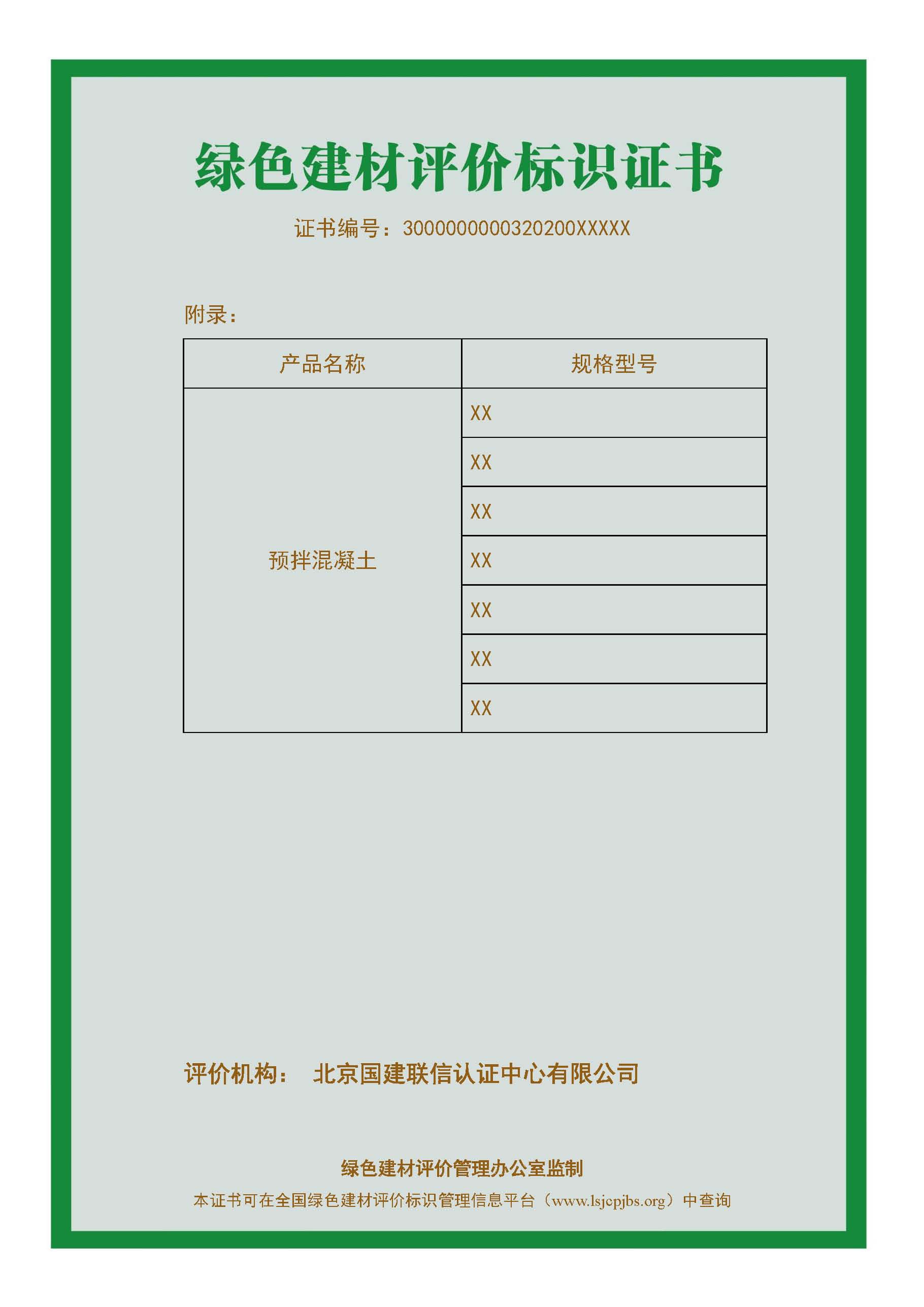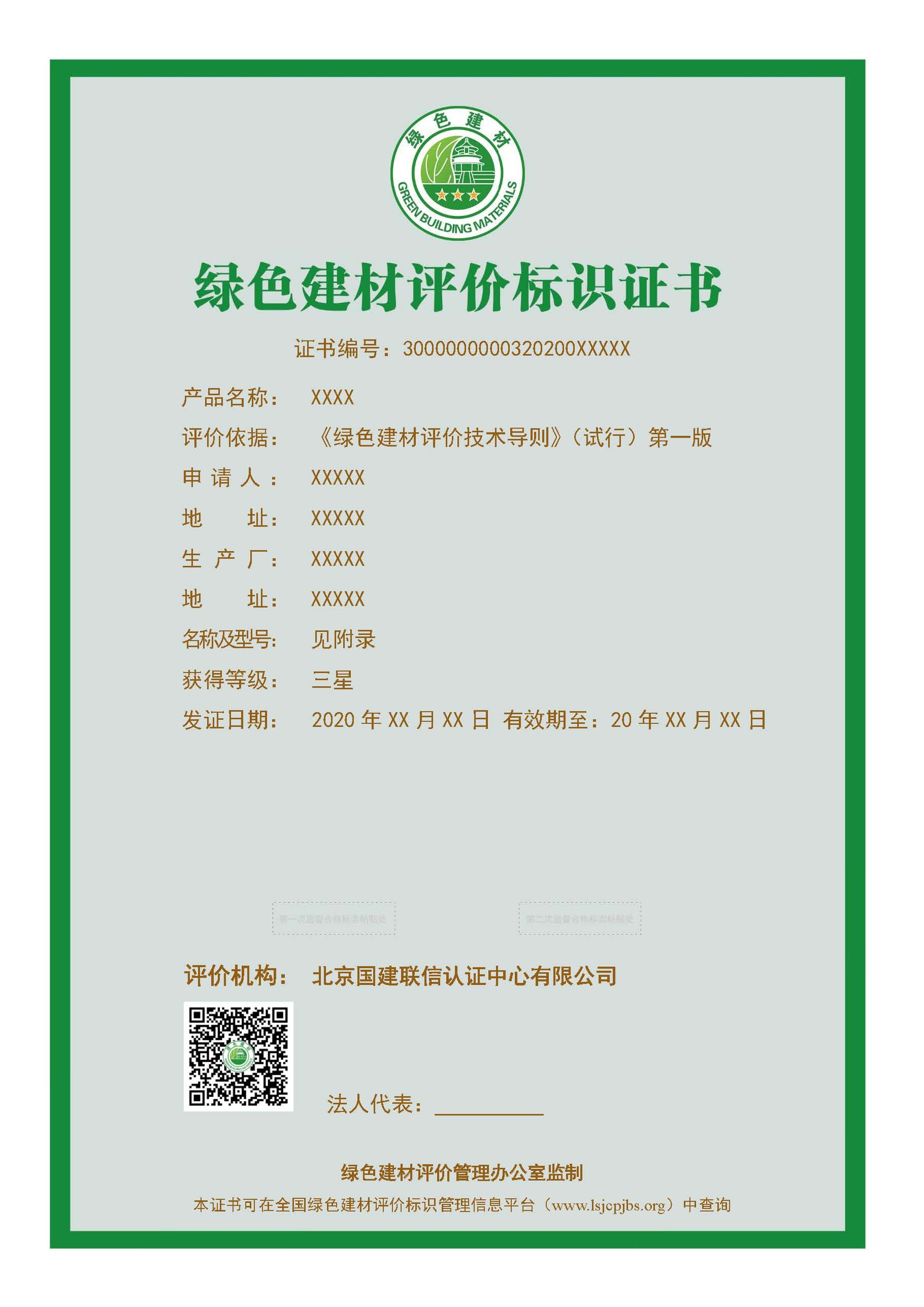 綠色建材評價(jià)標(biāo)識證書樣板