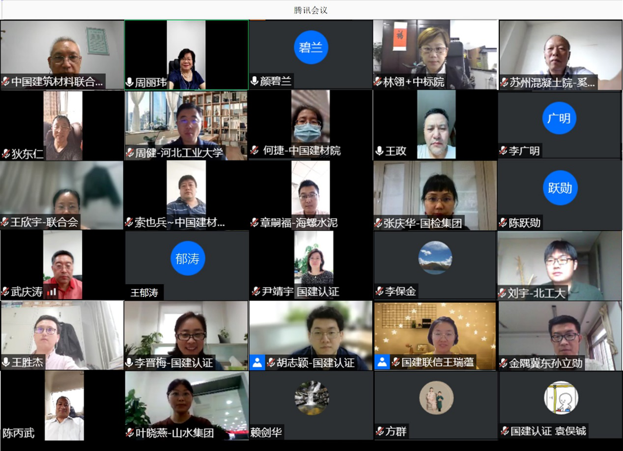 2020年8月13日,中國建筑材料聯(lián)合會在線上組織召開《綠色設計產(chǎn)品評價技術規(guī)范 水泥》建材行業(yè)標準審查會,會議由中國建筑材料聯(lián)合會科技教育委員會秘書長周麗瑋教授主持。標準完成單位北京國建聯(lián)信認證中心總經(jīng)理武慶濤等領導出席會議并致辭。