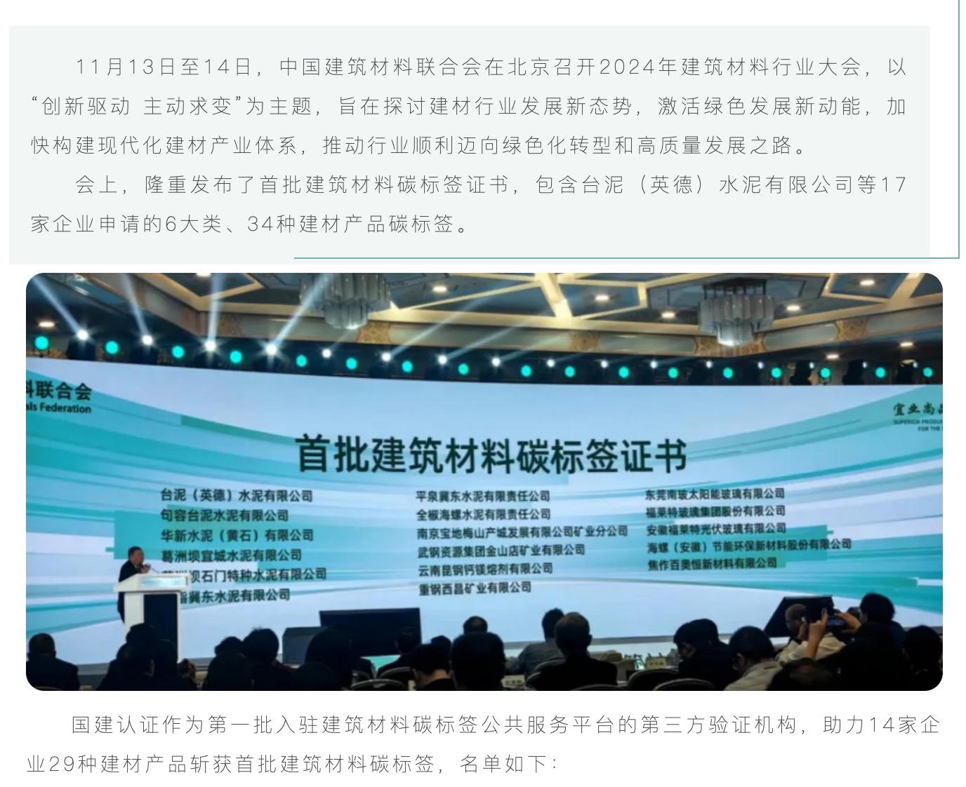 為綠色未來(lái)賦能,國(guó)建認(rèn)證助企業(yè)斬獲首批建筑材料碳標(biāo)簽