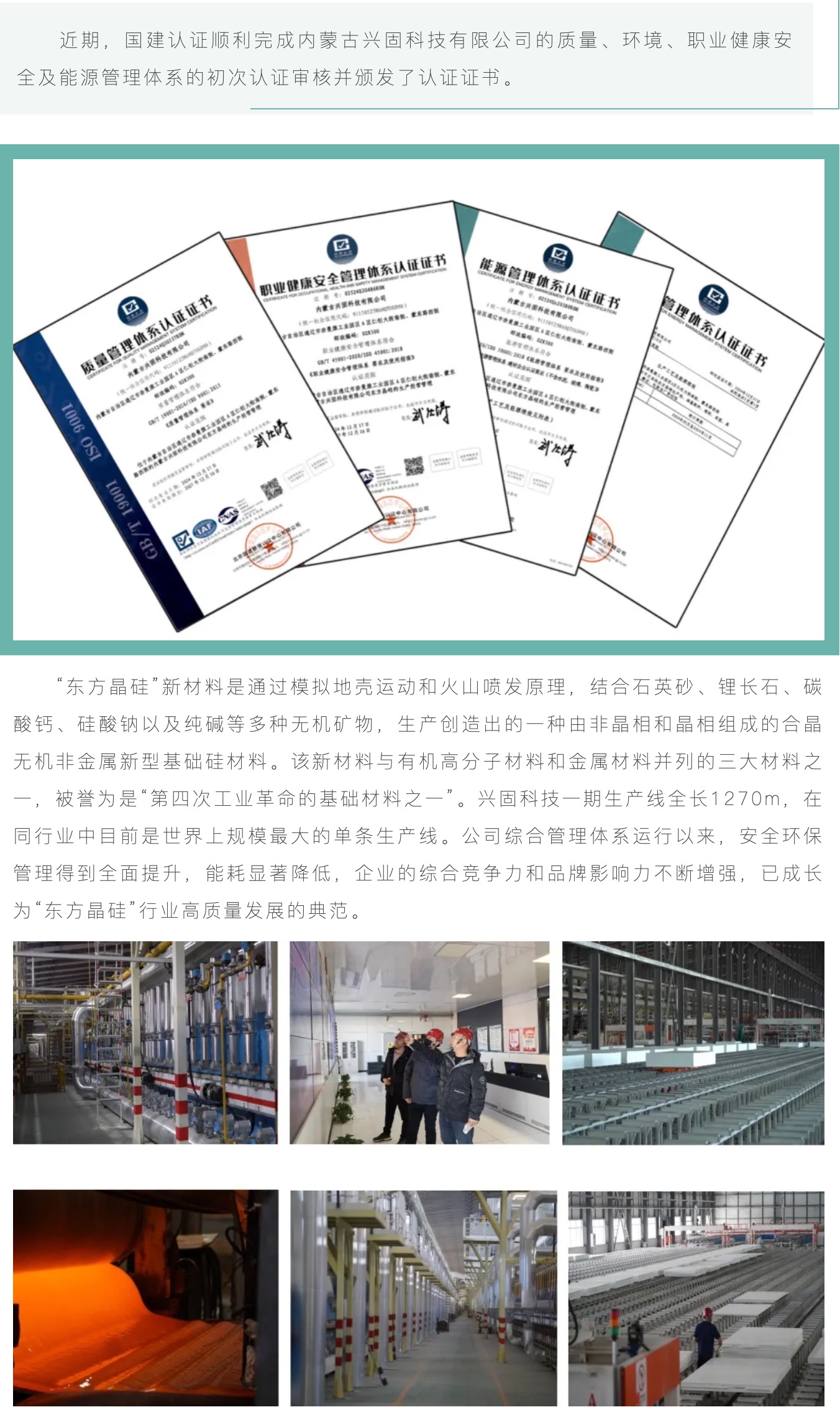 國建認(rèn)證頒發(fā)內(nèi)蒙古“東方晶硅”企業(yè)管理體系認(rèn)證證書