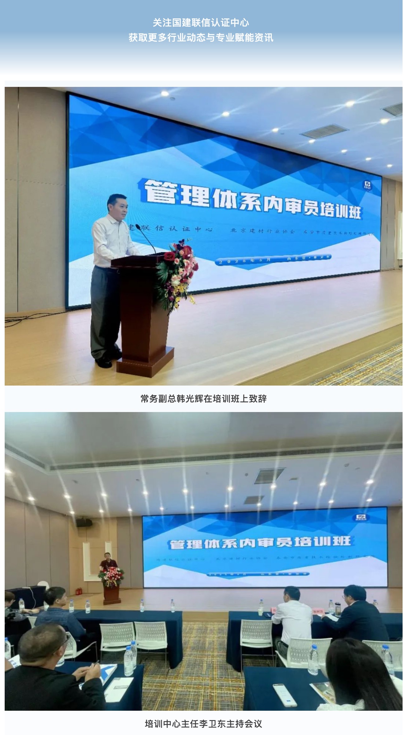 2025年4月至5月,由國建聯(lián)信認(rèn)證中心主辦“管理體系內(nèi)審員培訓(xùn)班”,相繼在陜西、山東、江蘇三省落地。其中,山東站培訓(xùn)由本中心和北京建材行業(yè)聯(lián)合會、泰安市質(zhì)量技術(shù)檢驗檢測研究院聯(lián)合協(xié)辦。培訓(xùn)匯聚冀東水泥、堯柏集團(tuán)、祁連山集團(tuán)、南方集團(tuán)、金峰集團(tuán)、葛洲壩集團(tuán)、萬年青集團(tuán)、中聯(lián)水泥集團(tuán)、海螺集團(tuán)等120余家行業(yè)領(lǐng)軍企業(yè)的300余名代表參與,共同聚焦管理體系內(nèi)審能力的提升與實踐。