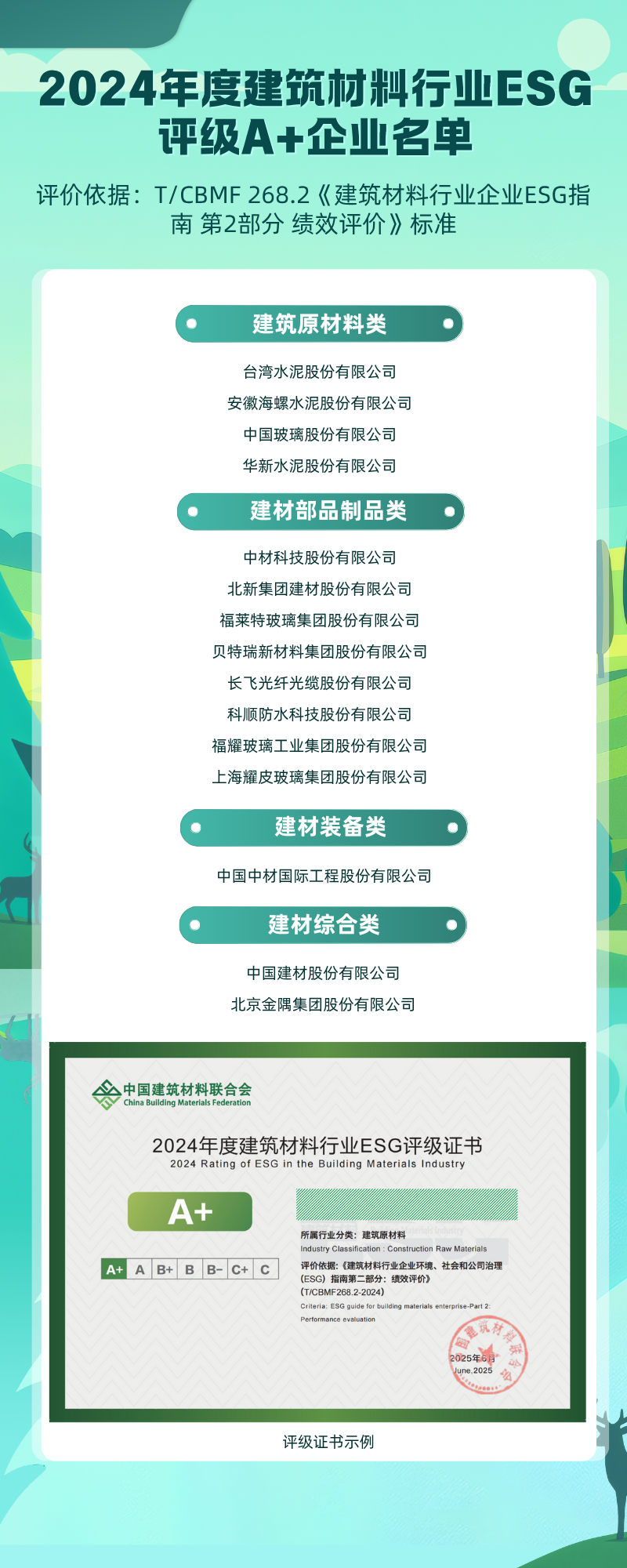 2024年度建筑材料行業(yè)ESG評(píng)級(jí)A+企業(yè)名單正式發(fā)布