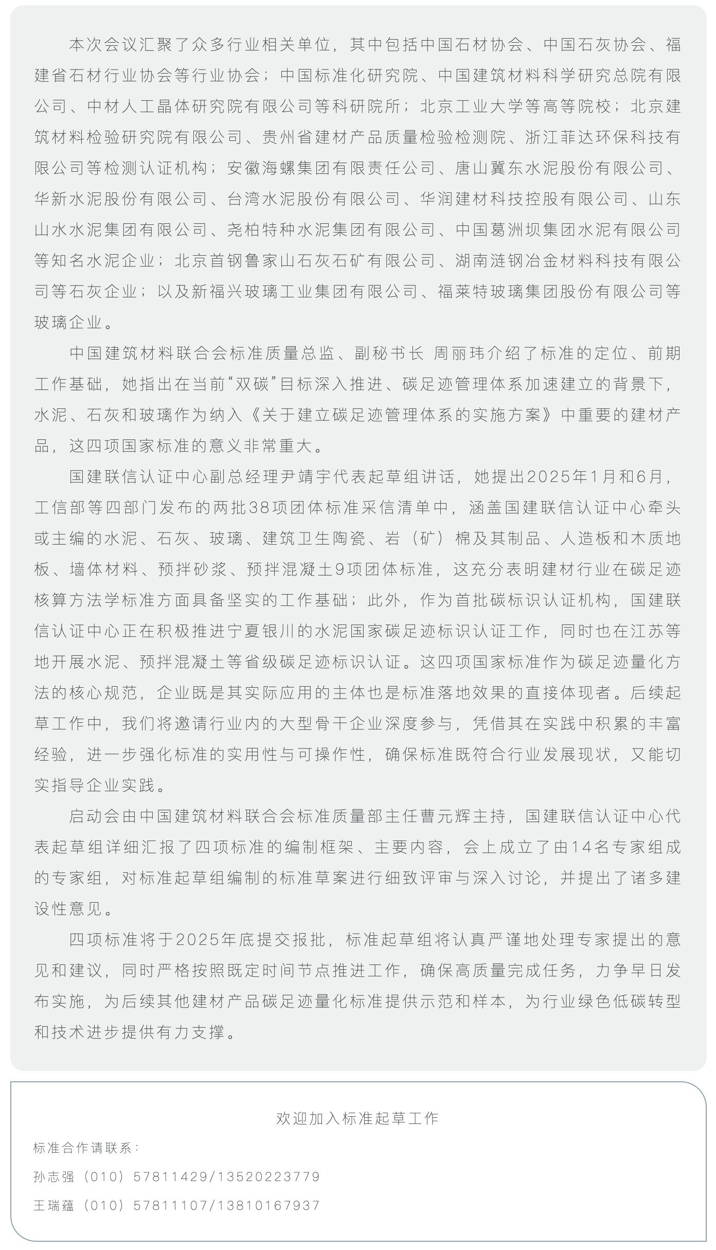 《溫室氣體 產(chǎn)品碳足跡量化方法與要求 水泥》等4項(xiàng)國(guó)家標(biāo)準(zhǔn)啟動(dòng)會(huì)順利召開(kāi)