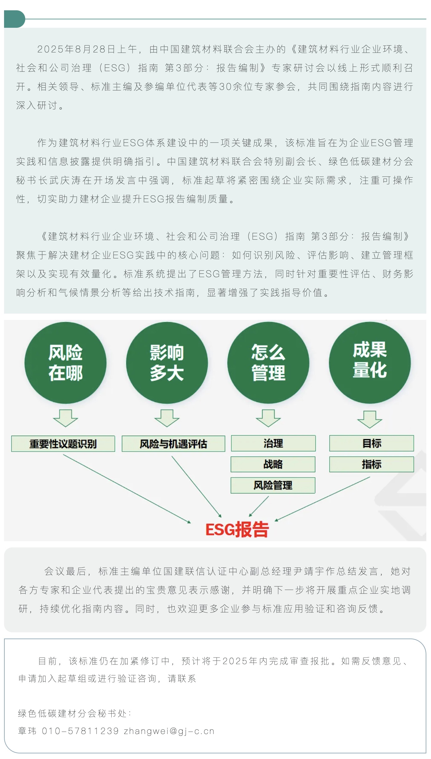 《建筑材料行業(yè)企業(yè)環(huán)境、社會和公司治理(ESG)指南 第3部分:報告編制》專家研討會成功召開