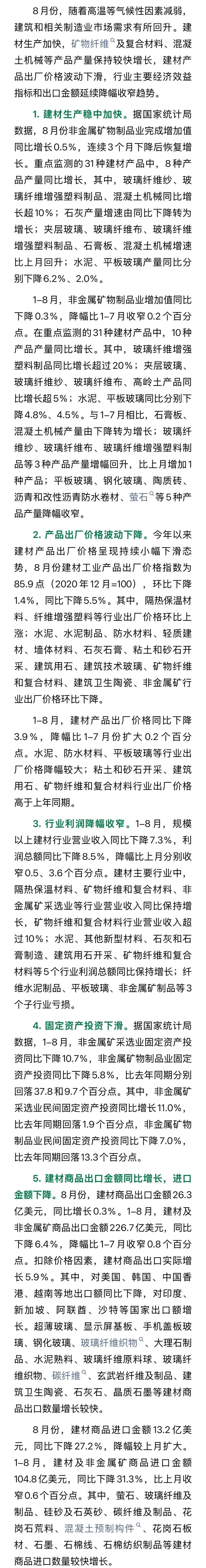 8月份建筑材料行業(yè)運(yùn)行情況簡報(bào)