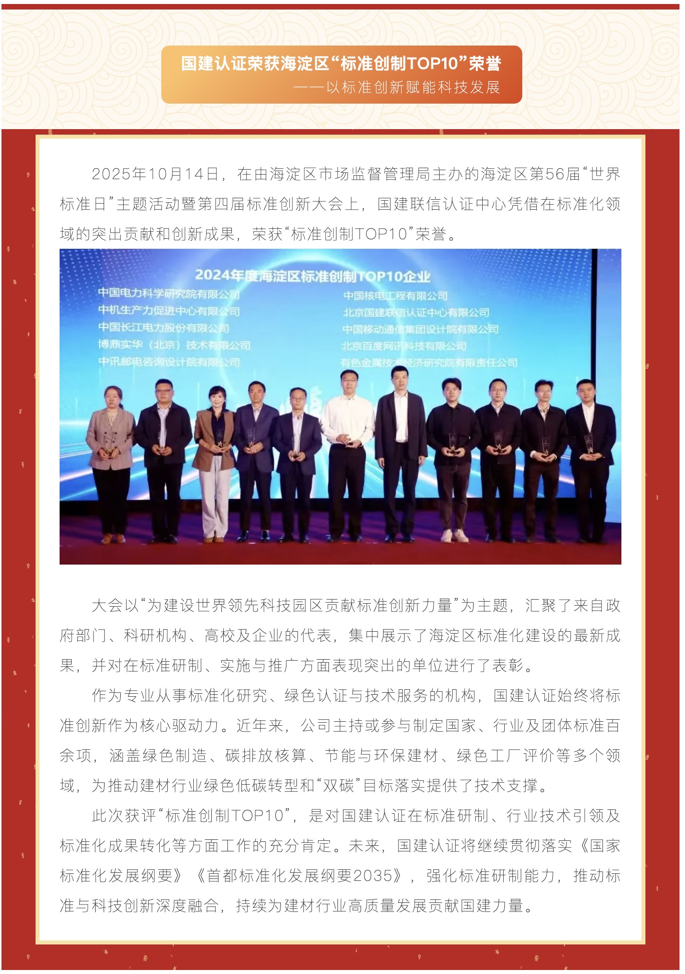 國建認(rèn)證榮獲海淀區(qū)“標(biāo)準(zhǔn)創(chuàng)制TOP10”榮譽