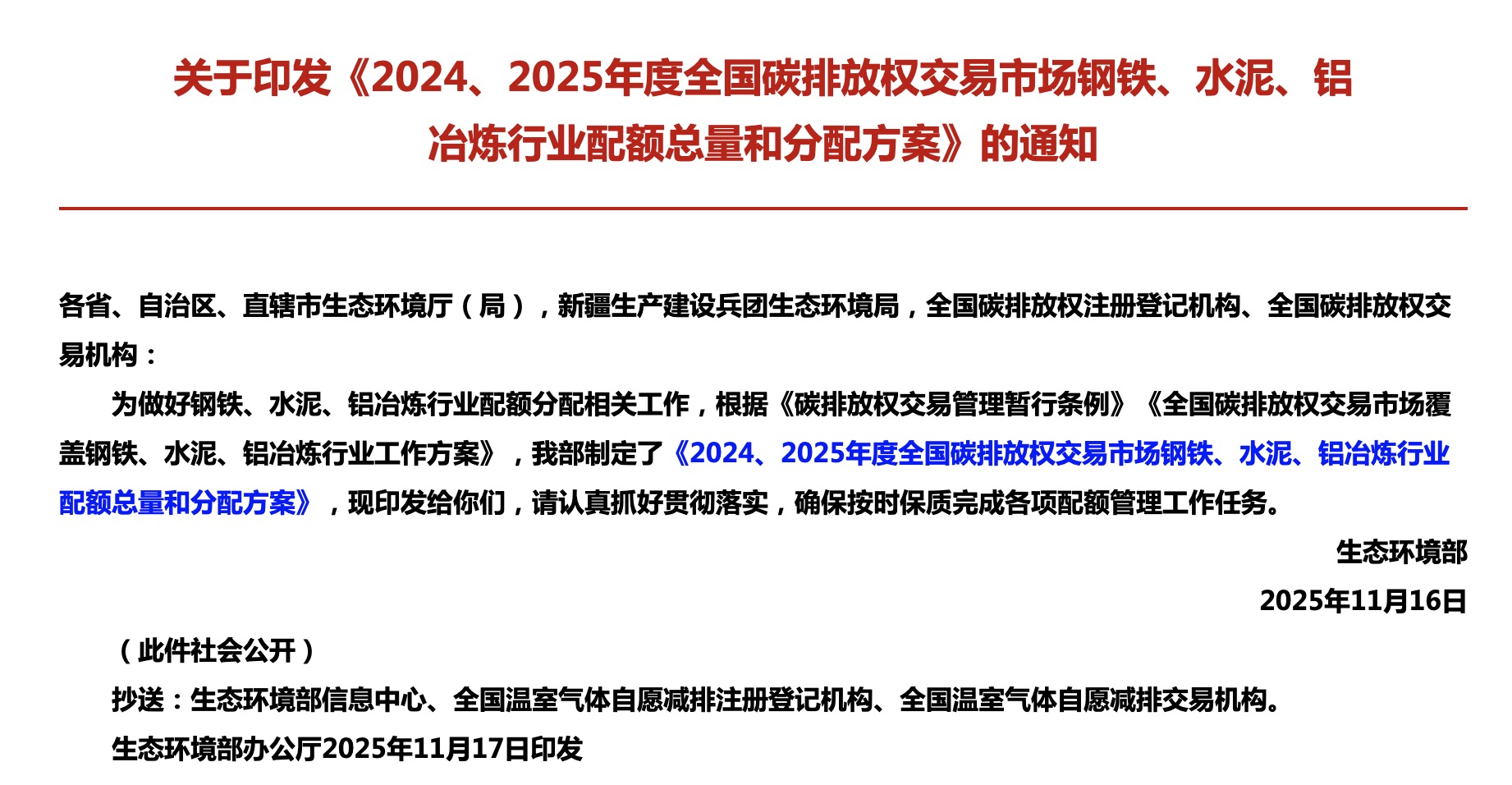 一圖讀懂 | 《2024、2025年度全國碳排放權(quán)交易市場鋼鐵、水泥、鋁冶煉行業(yè)配額總量和分配方案》