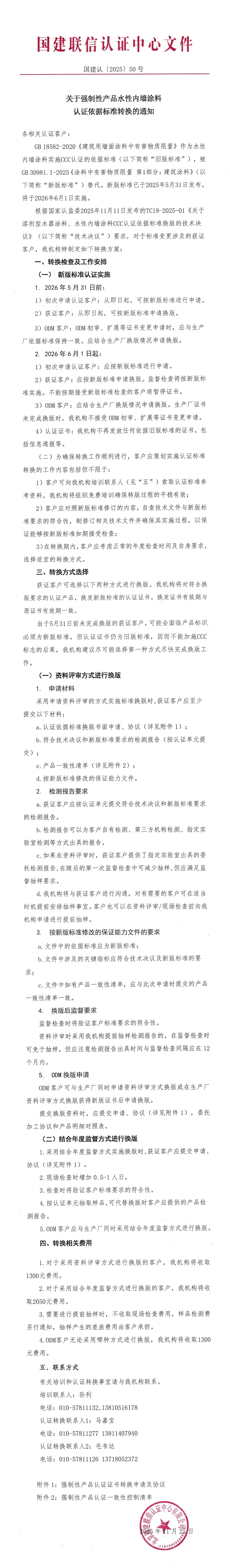 關(guān)于強(qiáng)制性產(chǎn)品水性內(nèi)墻涂料認(rèn)證依據(jù)標(biāo)準(zhǔn)轉(zhuǎn)換的通知