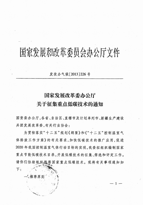 關(guān)于轉(zhuǎn)發(fā)《國家發(fā)展改革委辦公廳關(guān)于征集重點低碳技術(shù)的通知》的通知