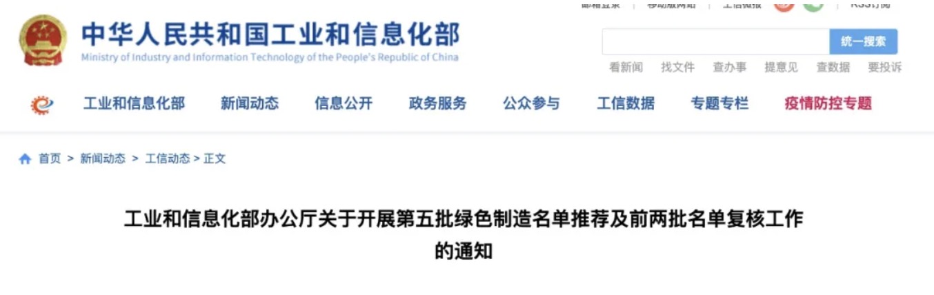 工業(yè)和信息化部辦公廳關(guān)于開展第五批綠色制造名單推薦及前兩批名單復(fù)核工作的通知