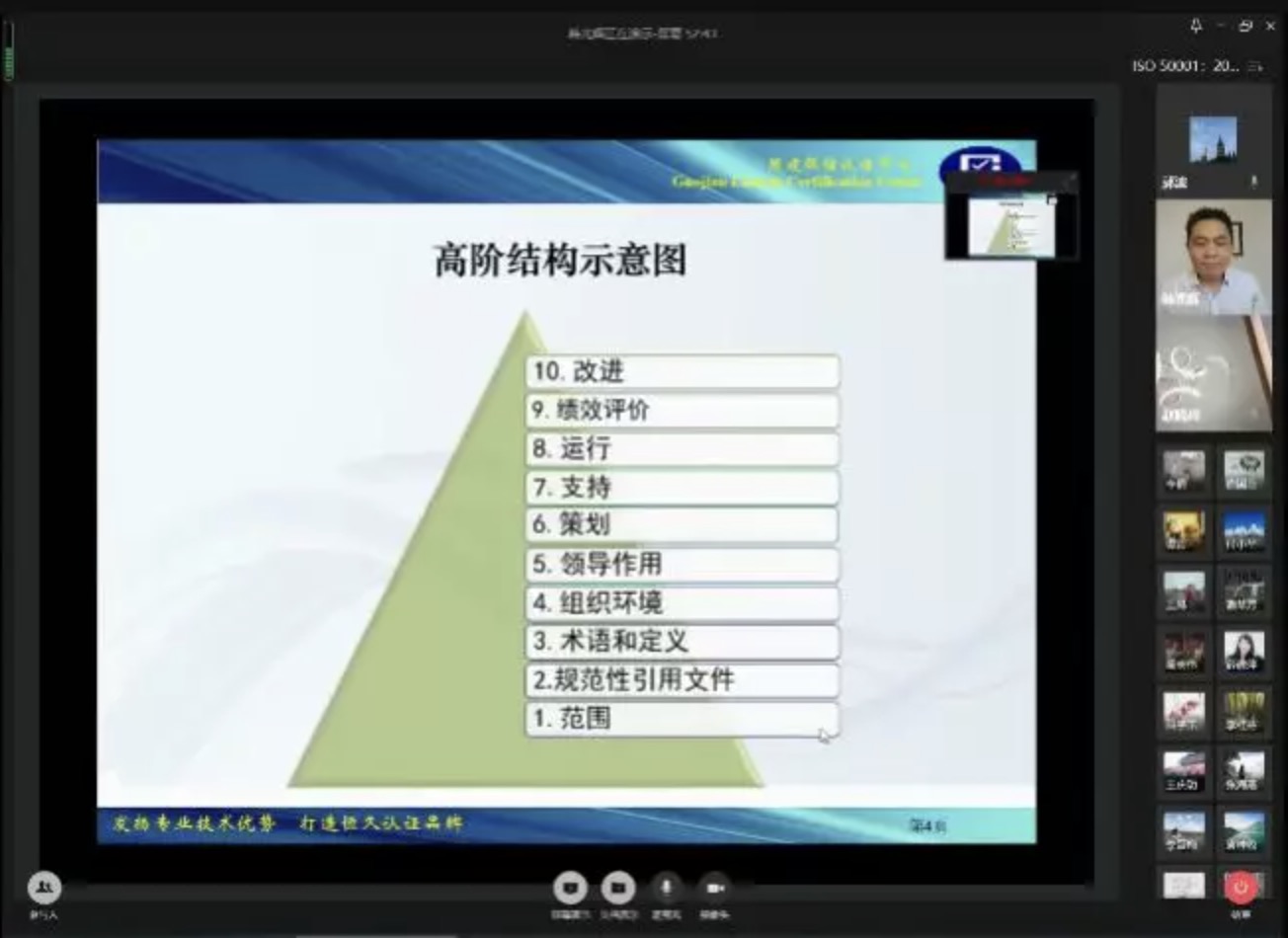 按照培訓(xùn)安排,3月16日上午9:30首場系列培訓(xùn)開始。首場培訓(xùn)由尹靖宇副總經(jīng)理主持,尹總首先歡迎各位審核員參加此次網(wǎng)絡(luò)課堂培訓(xùn),并對系列培訓(xùn)前兩周的課程安排做簡要介紹。隨后,武慶濤總經(jīng)理講話,武總代表中心對大家在疫情防控期間表示關(guān)心和感謝,要求大家現(xiàn)階段仍不能放松警惕,做到少出門、少聚集,做好個人防護,堅決打贏這場疫情防控攻堅戰(zhàn);武總同時指出,中心將利用這段時間組織一系列的視頻會議培訓(xùn),對近年來的審核、技術(shù)、要求等做總結(jié),也希望審核員能夠?qū)⒆约汉玫膶徍私?jīng)驗整理出來分享給大家。