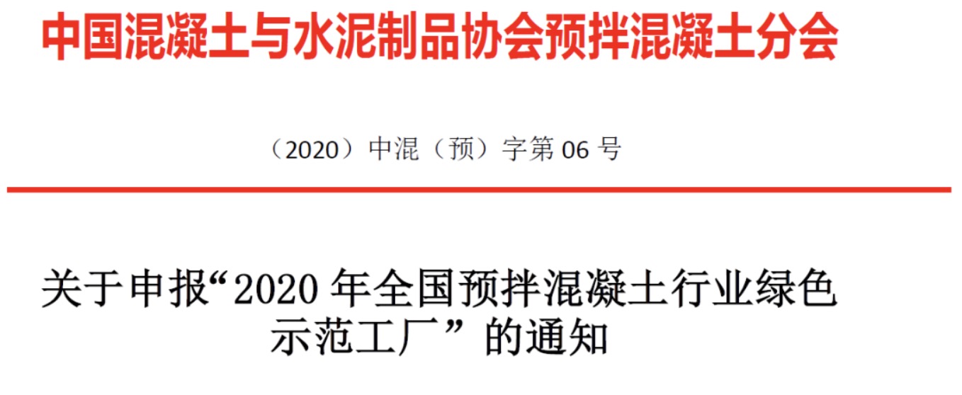 關(guān)于申報(bào)“2020年全國預(yù)拌混凝土行業(yè)綠色示范工廠”的通知