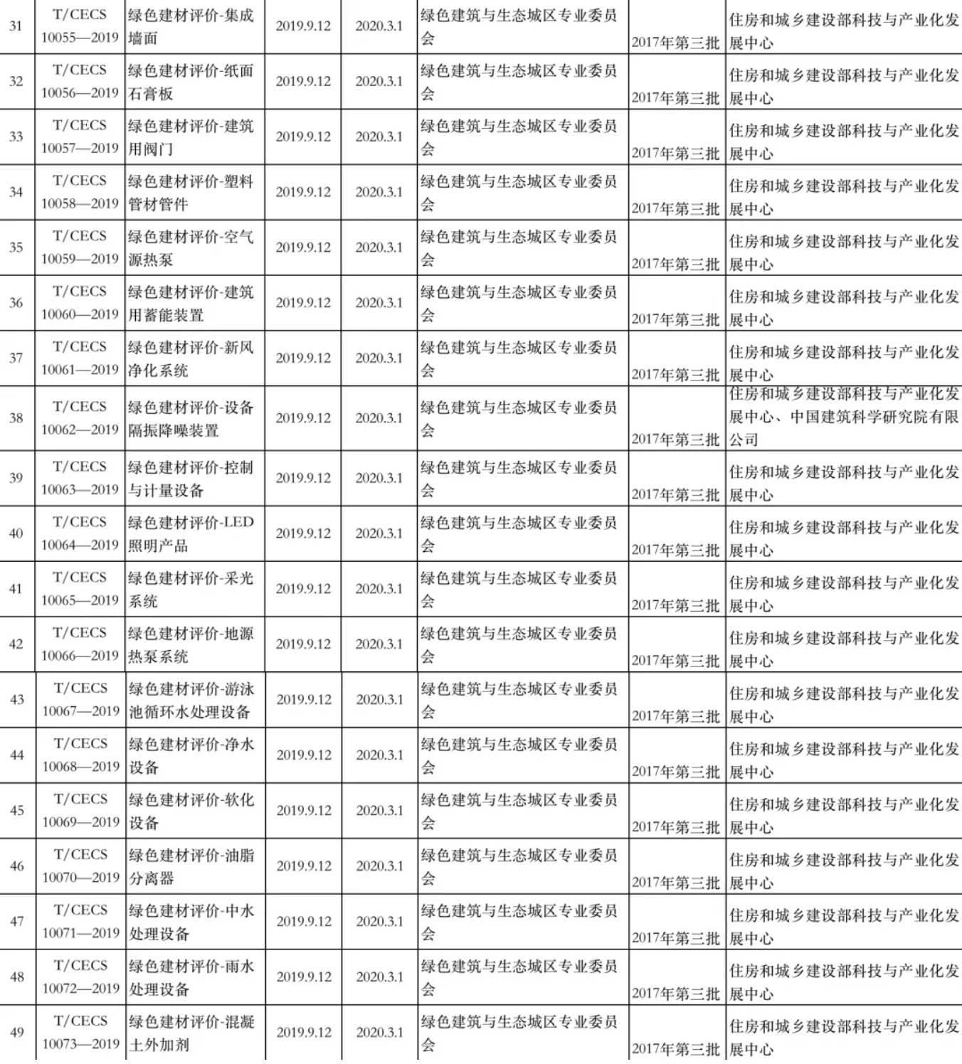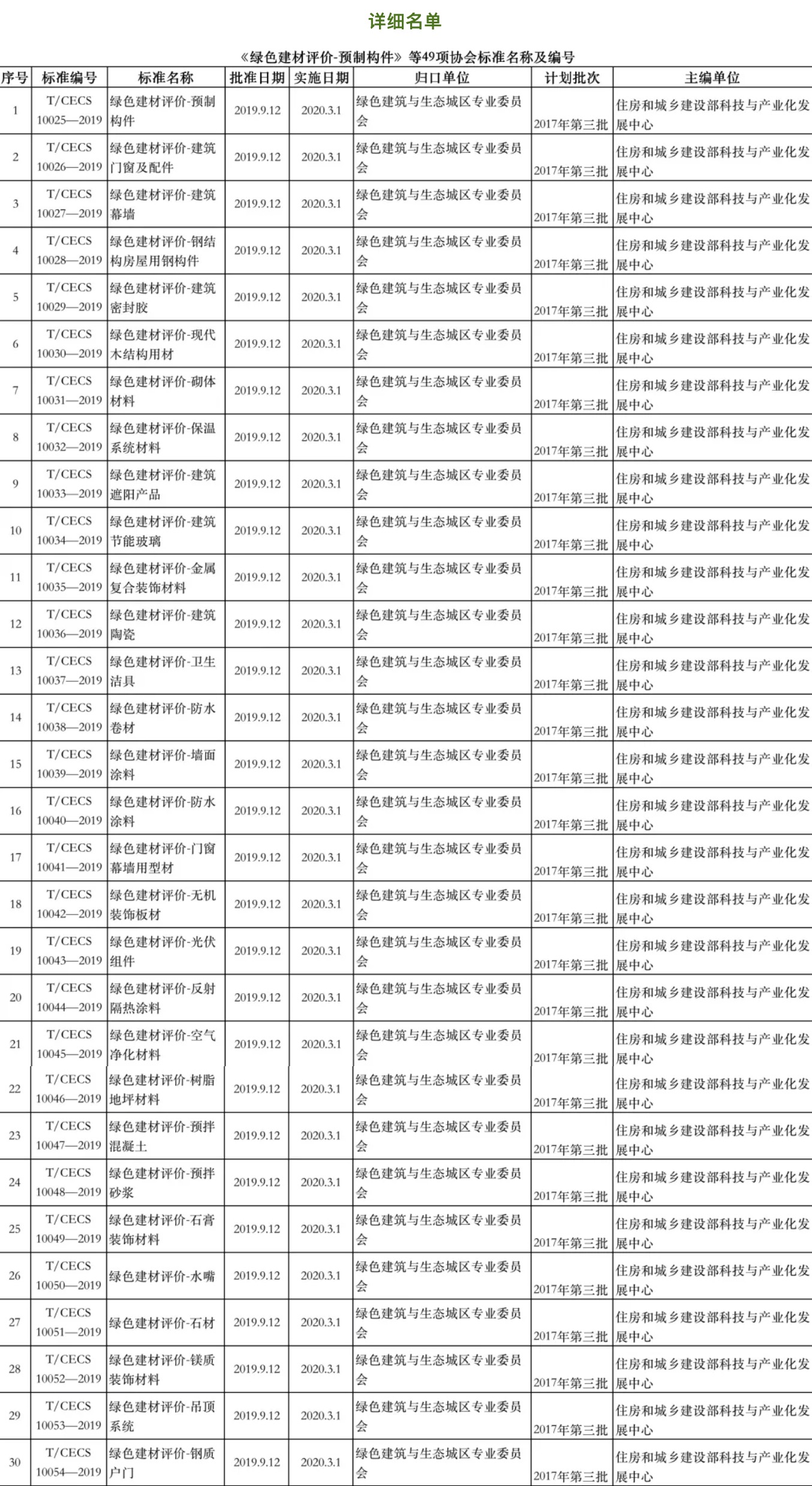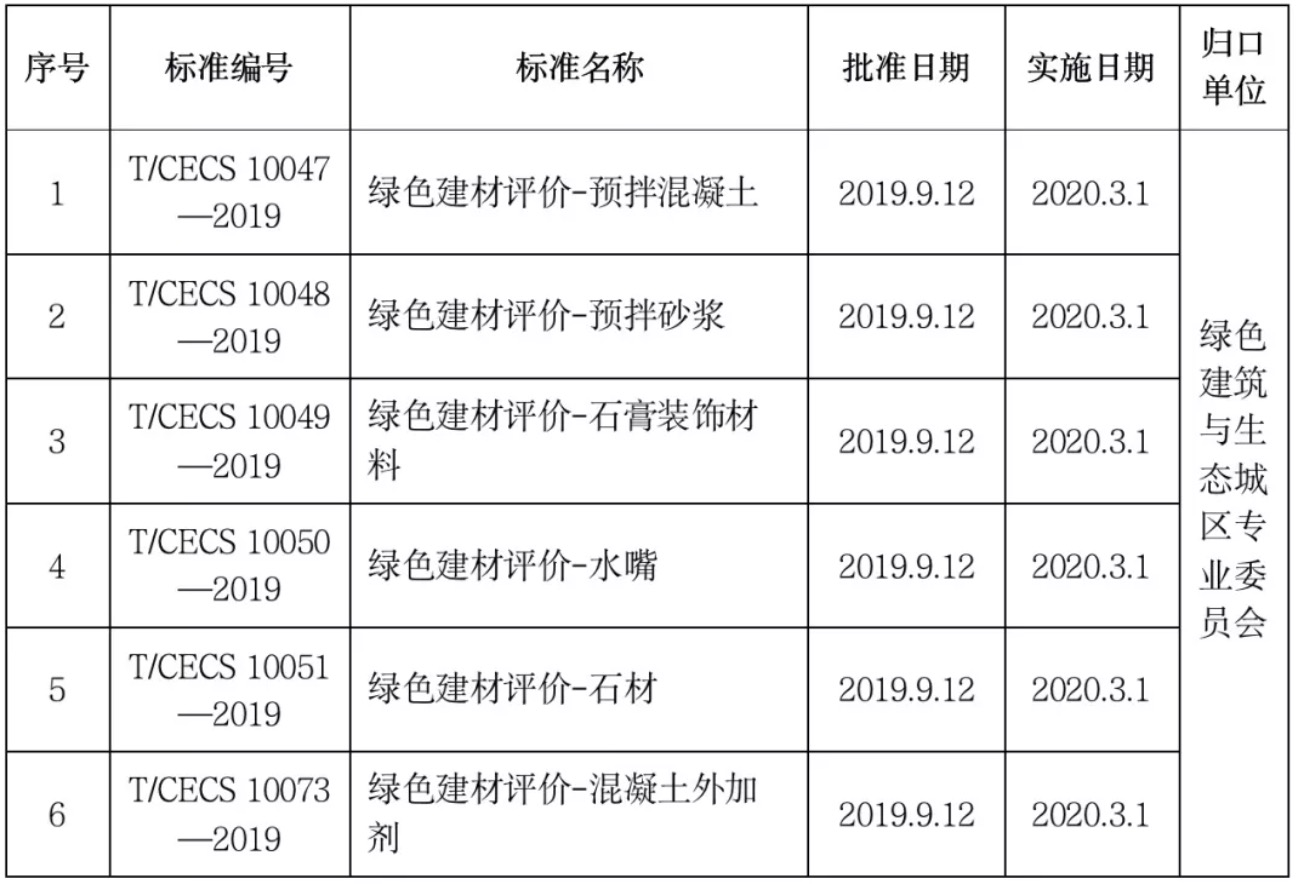 根據(jù)中國(guó)工程建設(shè)標(biāo)準(zhǔn)化協(xié)會(huì)《關(guān)于印發(fā)<中國(guó)工程建設(shè)標(biāo)準(zhǔn)化協(xié)會(huì)2017年第三批產(chǎn)品標(biāo)準(zhǔn)試點(diǎn)項(xiàng)目計(jì)劃>的通知》(建標(biāo)協(xié)字〔2017〕034號(hào))的要求,由住房和城鄉(xiāng)建設(shè)部科技與產(chǎn)業(yè)化發(fā)展中心等單位編制的《綠色建材評(píng)價(jià) 預(yù)制構(gòu)件》等49項(xiàng)協(xié)會(huì)標(biāo)準(zhǔn),經(jīng)CECS綠色建筑與生態(tài)城區(qū)專業(yè)委員會(huì)組織審查,于2019年9月12日發(fā)布,2020年3月1日起施行,標(biāo)準(zhǔn)名稱及編號(hào)詳情見(jiàn)附件。其中,北京國(guó)建聯(lián)信認(rèn)證中心有限公司牽頭編制《綠色建材評(píng)價(jià) 預(yù)拌砂漿》、《綠色建材評(píng)價(jià) 預(yù)拌混凝土》、《綠色建材評(píng)價(jià) 混凝土外加劑》、《綠色建材評(píng)價(jià) 石膏裝飾材料》、《綠色建材評(píng)價(jià) 石材》和《綠色建材評(píng)價(jià) 水嘴》等6項(xiàng)綠色建材標(biāo)準(zhǔn)。