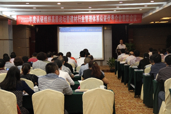 北京國建聯(lián)信認(rèn)證中心于2013年9月23日至9月25日在貴陽召開了2013年度認(rèn)證組織高層論壇暨建材行業(yè)管理體系優(yōu)秀企業(yè)、優(yōu)秀管理者代表和優(yōu)秀個人表彰會議。建材聯(lián)合會、貴州省建材協(xié)會、貴州省質(zhì)檢院等相關(guān)領(lǐng)導(dǎo)及企業(yè)代表、中心領(lǐng)導(dǎo)等100余人出席了會議。