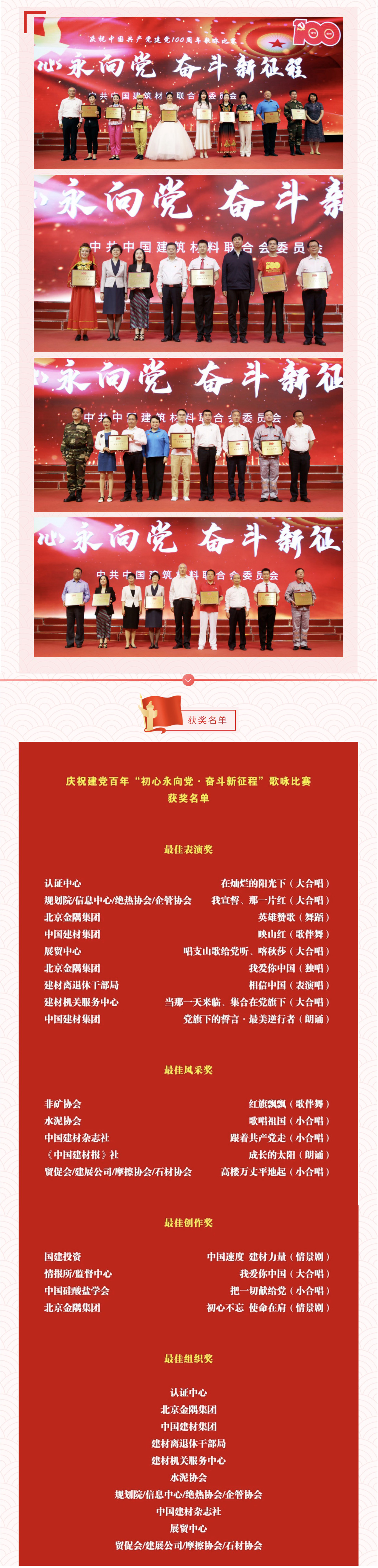 中國建筑材料聯(lián)合會黨委慶祝中國共產(chǎn)黨成立100周年《初心永向黨 奮斗新征程》大型歌詠比賽成功舉辦