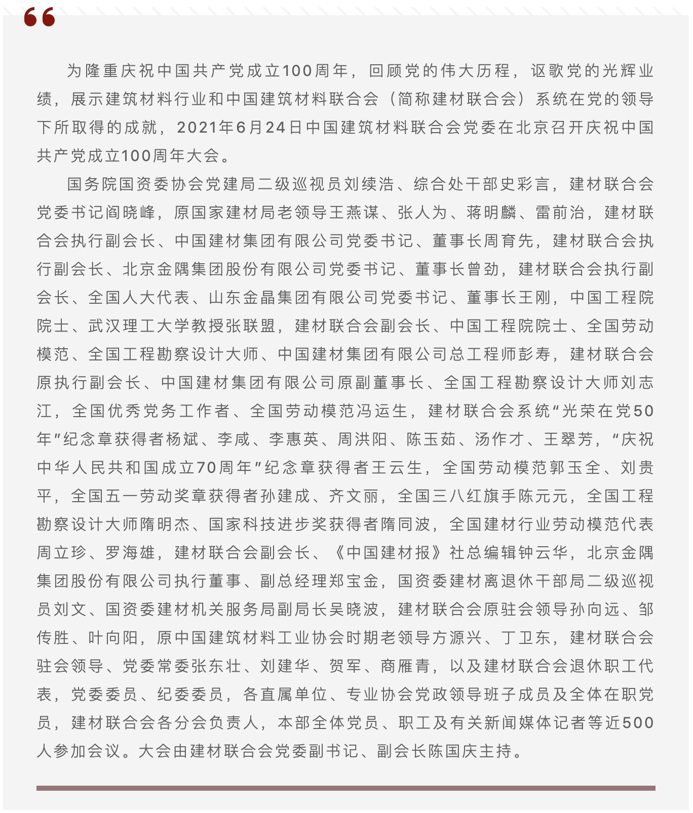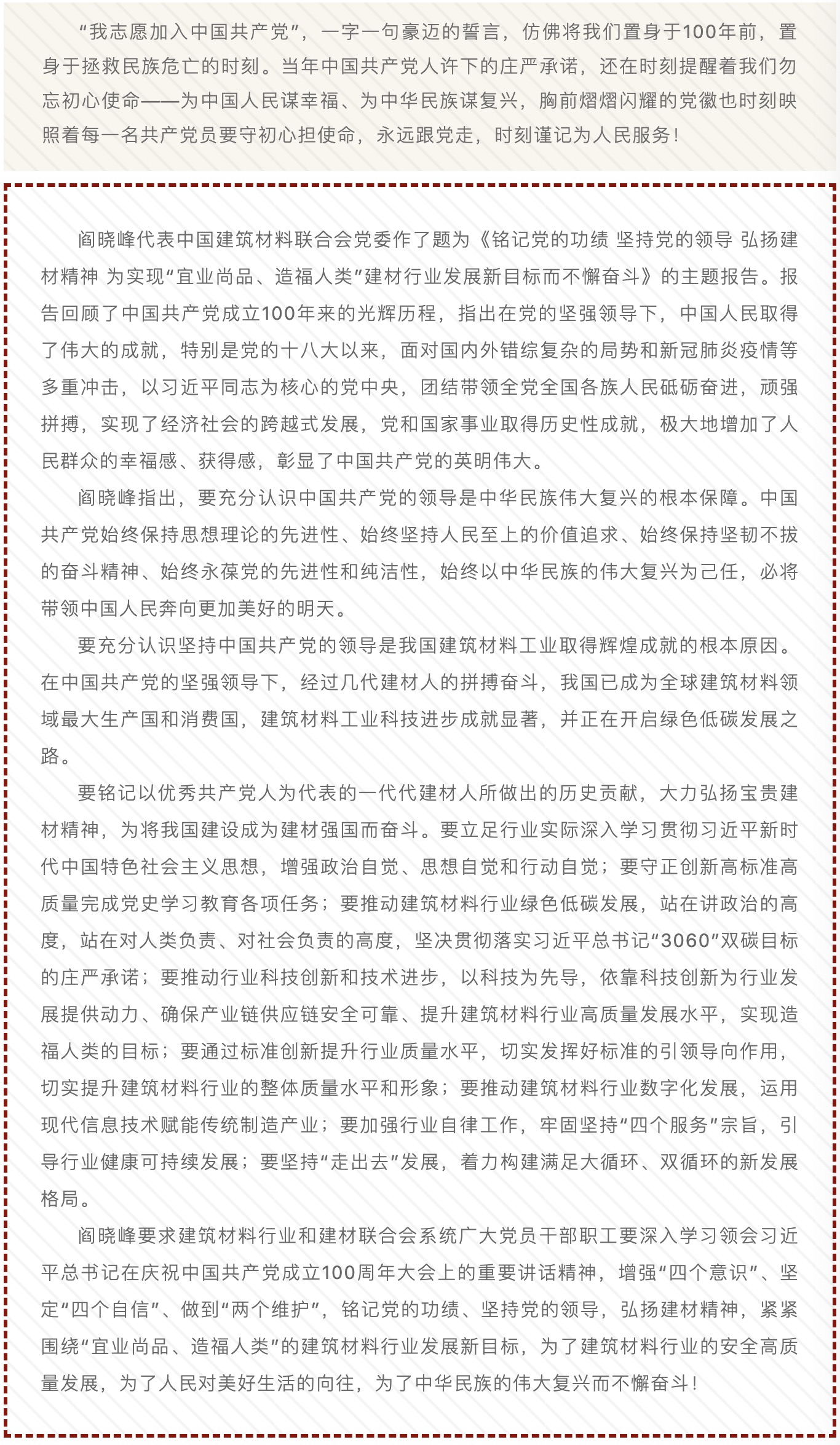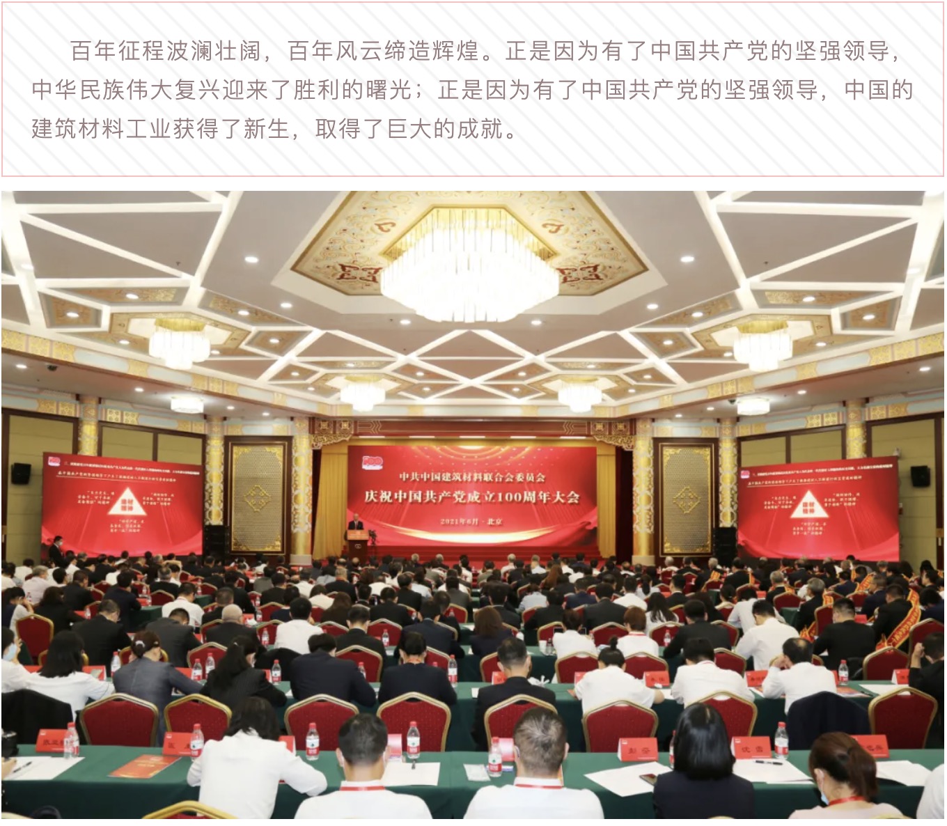 回望百年奮斗路 啟航時代新征程——中國建筑材料聯(lián)合會黨委召開慶祝中國共產(chǎn)黨成立100周年大會
