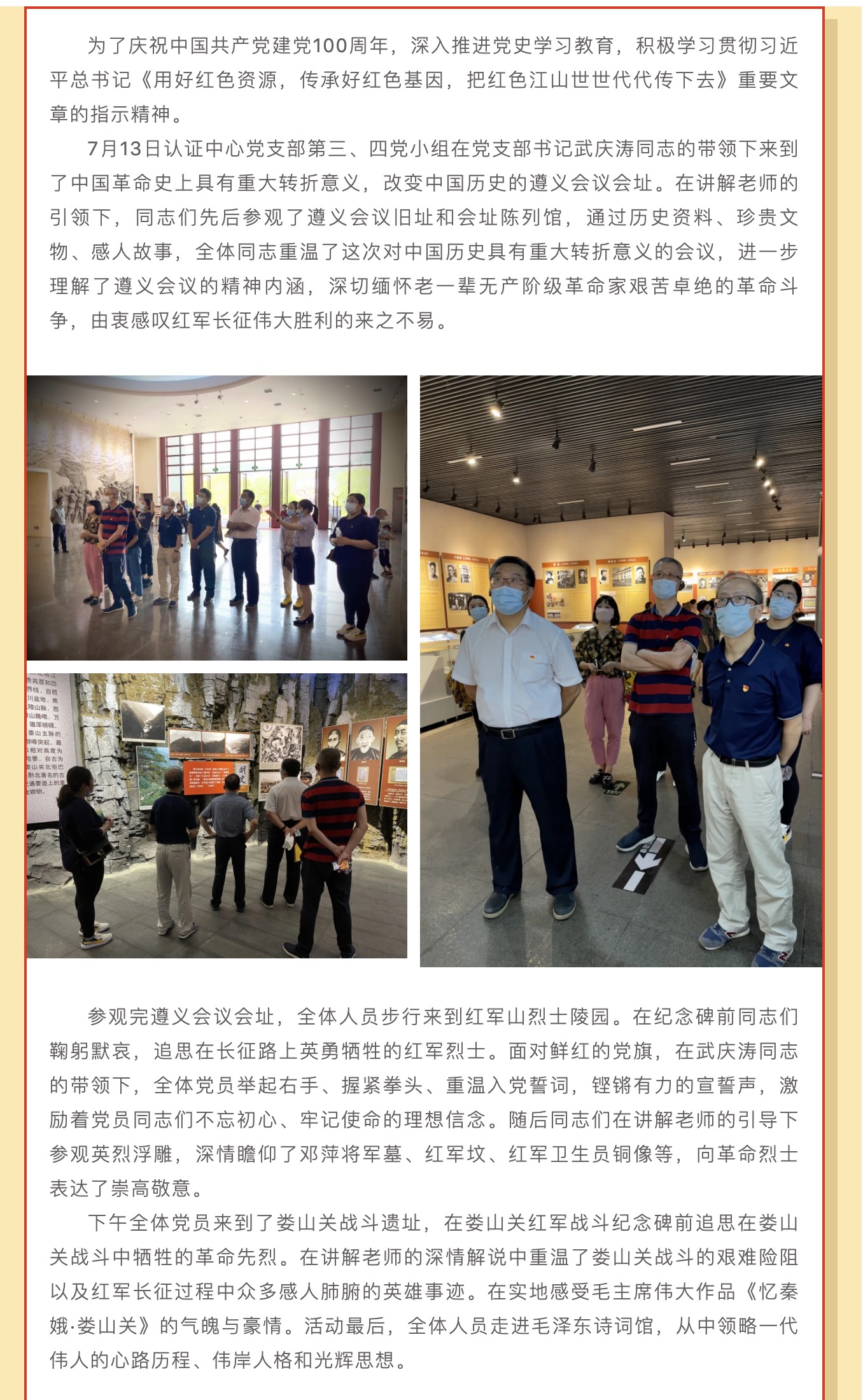 “慶建黨百年·憶紅色初心”——認(rèn)證中心黨支部第三、四黨小組赴遵義開展主題黨日活動
