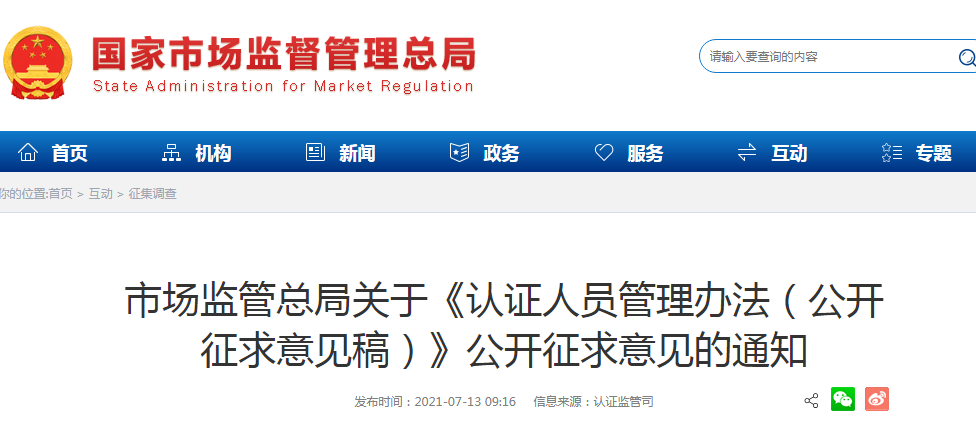 近日,國(guó)家市場(chǎng)監(jiān)督管理總局對(duì)《認(rèn)證人員管理辦法(公開(kāi)征求意見(jiàn)稿)》公開(kāi)征求意見(jiàn),并發(fā)布《認(rèn)證人員管理辦法(公開(kāi)征求意見(jiàn)稿)》起草說(shuō)明,對(duì)修訂的必要性和修訂的主要內(nèi)容作了說(shuō)明。