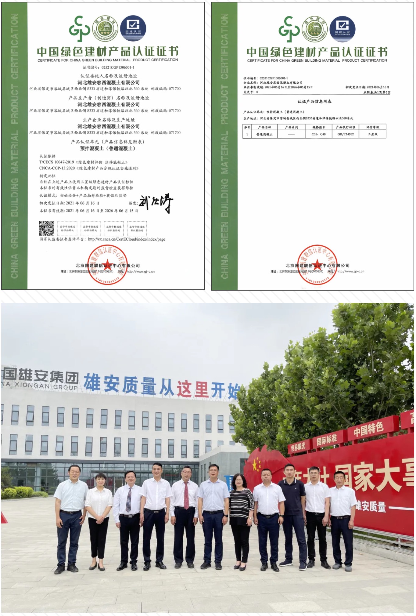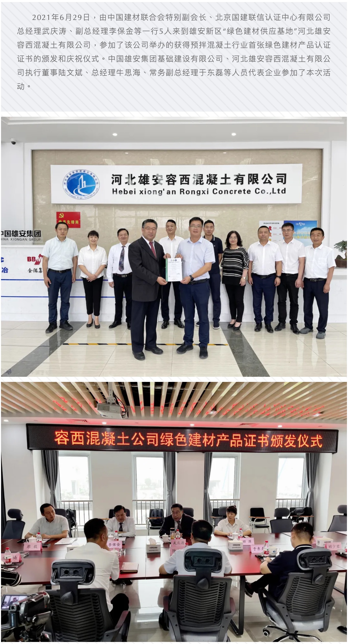國建認(rèn)證為河北雄安容西混凝土有限公司現(xiàn)場頒發(fā) 綠色建材產(chǎn)品認(rèn)證證書