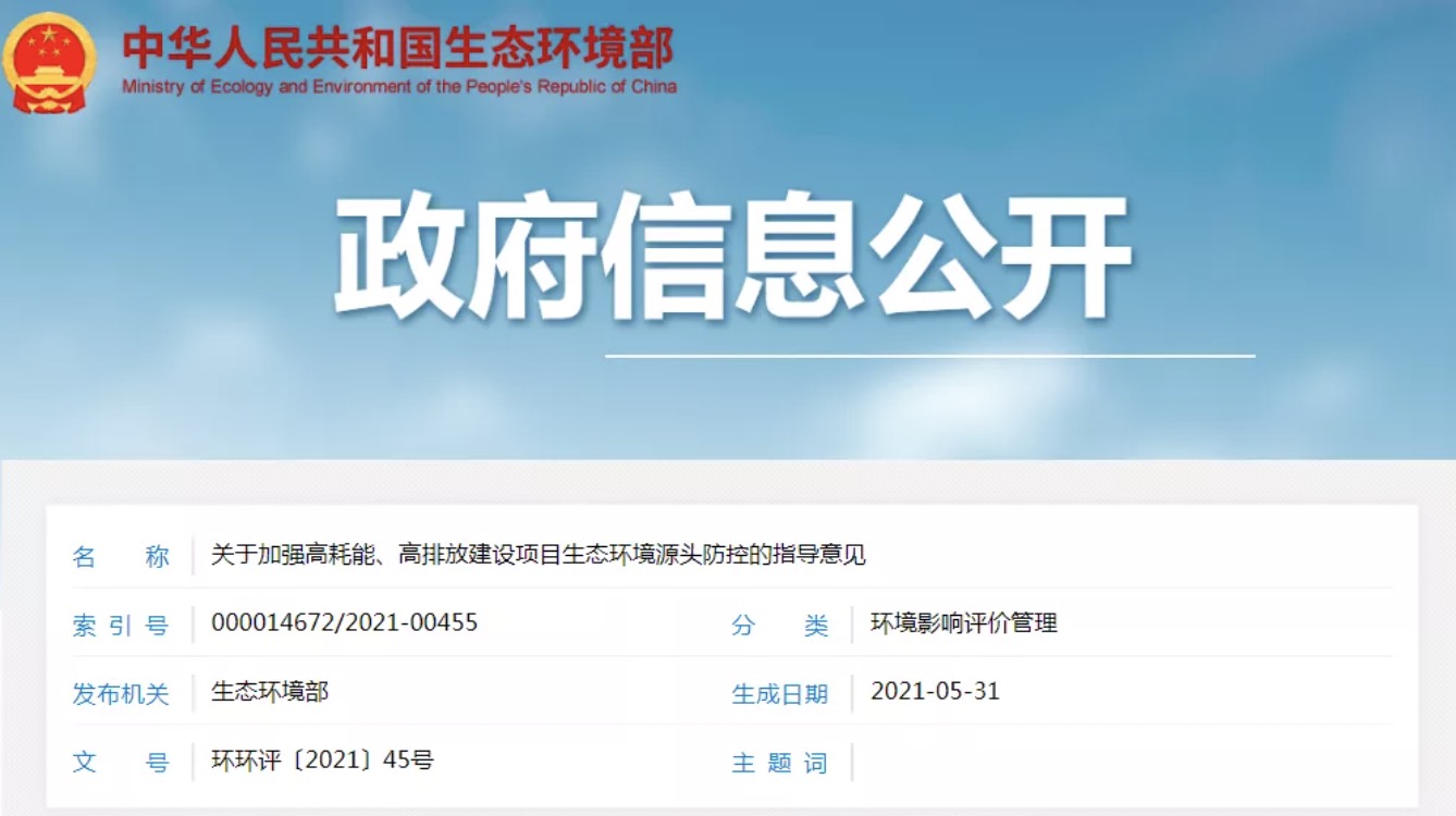 關(guān)于加強高耗能、高排放建設(shè)項目生態(tài)環(huán)境源頭防控的指導(dǎo)意見