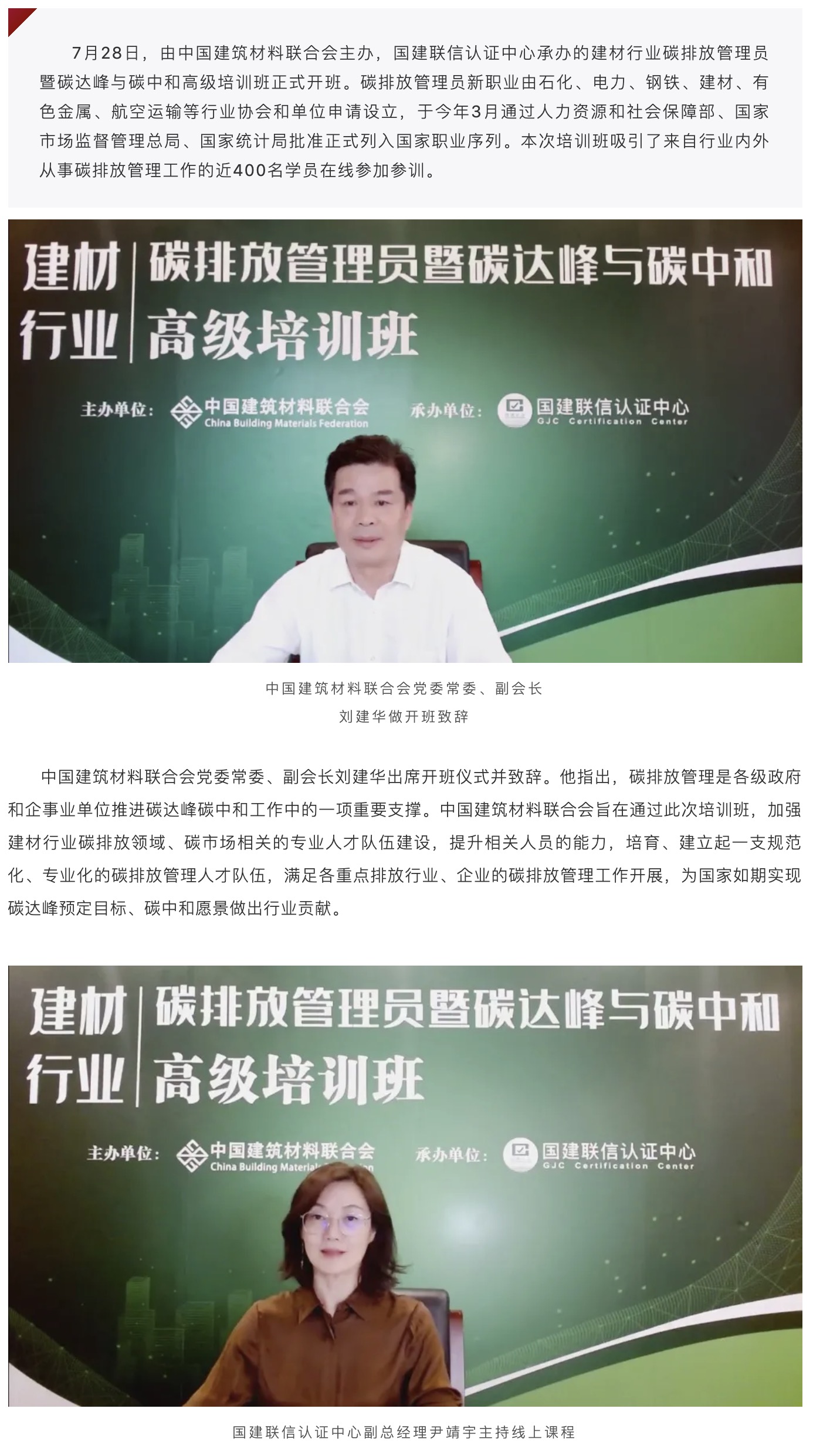 建材行業(yè)碳排放管理員暨碳達峰與碳中和高級培訓(xùn)班正式開課