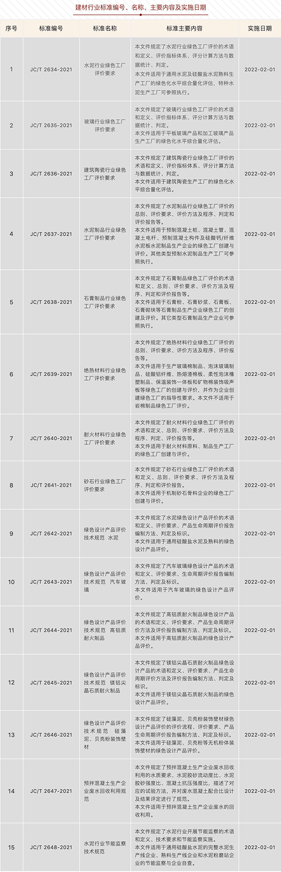 建材行業(yè)15項綠色制造類標(biāo)準(zhǔn)發(fā)布