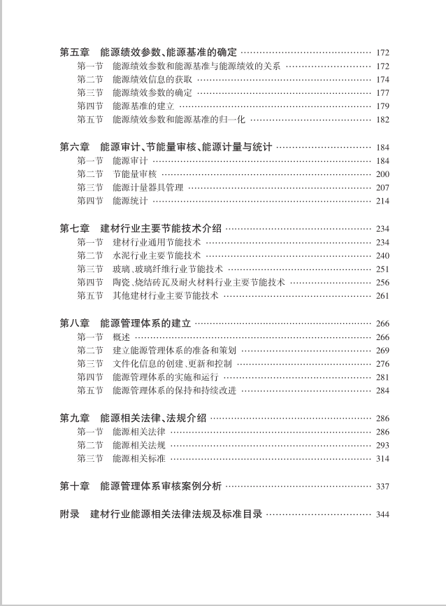 《建材行業(yè)能源管理體系教程》分為十個章節(jié),分別介紹了能源管理體系的基礎(chǔ)知識、國內(nèi)外能源發(fā)展的現(xiàn)狀及國際標準化組織和我國相關(guān)能源方面的系列標準;依據(jù)GB/T 23331《能源管理體系 要求及使用指南》(ISO 50001)標準,對標準條文理解、標準應(yīng)用和審核要點進行了重點論述;依據(jù)ISO 19011《管理體系審核指南》,對組織內(nèi)部審核方案的管理、實施審核及審核員的能力和評價進行了詳述。該教程還結(jié)合建材行業(yè)對能源評審、能源績效參數(shù)確定及能源基準的建立、能源審計、主要節(jié)能技術(shù)、能源相關(guān)法律法規(guī)和標準進行了重點介紹,以幫助建材企業(yè)建立、實施、保持和改進企業(yè)的能源管理體系、為能源管理人員系統(tǒng)地學(xué)習(xí)并成為建材行業(yè)注冊的內(nèi)部能源管理體系審核員提供方法和路徑。
