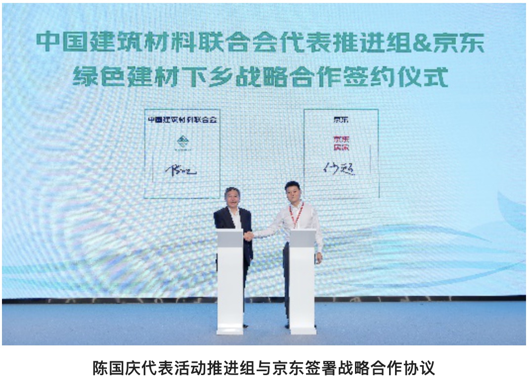 京東集團(tuán)始終堅(jiān)持為社會(huì)和諧發(fā)展創(chuàng)造價(jià)值,積極參與綠色建材下鄉(xiāng)活動(dòng),加快綠色建材產(chǎn)品推廣,為綠色消費(fèi)帶來(lái)新的增長(zhǎng)勢(shì)能。此次會(huì)議,陳國(guó)慶代表活動(dòng)推進(jìn)組與京東集團(tuán)正式簽訂“綠色建材下鄉(xiāng)活動(dòng)戰(zhàn)略合作框架協(xié)議”,京東作為綠色建材下鄉(xiāng)活動(dòng)戰(zhàn)略合作伙伴,成為綠色建材下鄉(xiāng)活動(dòng)線上平臺(tái)的主要建設(shè)者和參與者。會(huì)議期間,京東綠色建材下鄉(xiāng)活動(dòng)專區(qū)正式開啟運(yùn)營(yíng),將依托以家居家裝為核心的綠色供應(yīng)鏈,為廣大城鄉(xiāng)家庭打造覆蓋居家場(chǎng)景的一站式低碳生活解決方案。