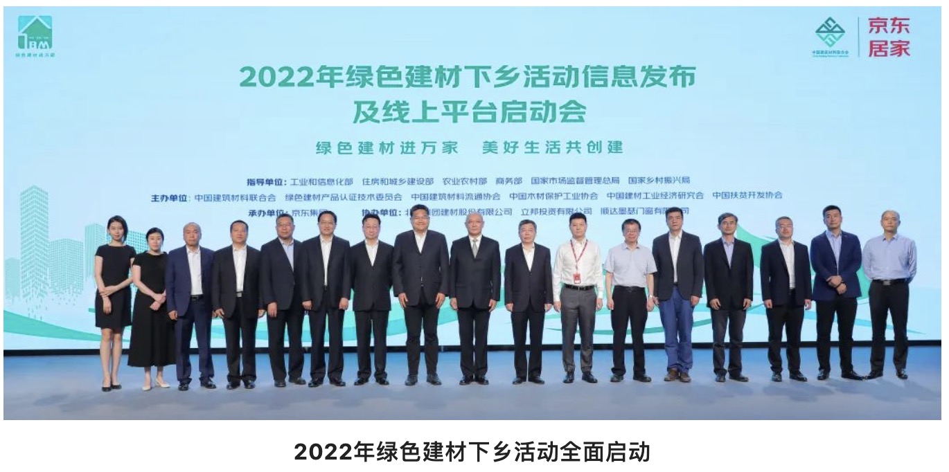 綠色建材下鄉(xiāng)活動(dòng)開始全面啟動(dòng),6月6日,由工業(yè)和信息化部、住房和城鄉(xiāng)建設(shè)部、農(nóng)業(yè)農(nóng)村部、商務(wù)部、國(guó)家市場(chǎng)監(jiān)督管理總局、國(guó)家鄉(xiāng)村振興局等六部門指導(dǎo),中國(guó)建筑材料聯(lián)合會(huì)、綠色建材產(chǎn)品認(rèn)證技術(shù)委員會(huì)、中國(guó)建筑材料流通協(xié)會(huì)、中國(guó)木材保護(hù)工業(yè)協(xié)會(huì)、中國(guó)建材工業(yè)經(jīng)濟(jì)研究會(huì)、中國(guó)扶貧開發(fā)協(xié)會(huì)聯(lián)合主辦,京東集團(tuán)承辦的“2022年綠色建材下鄉(xiāng)活動(dòng)信息發(fā)布及線上平臺(tái)啟動(dòng)會(huì)”舉行。會(huì)議對(duì)綠色建材下鄉(xiāng)活動(dòng)下一步工作進(jìn)行了總體安排,發(fā)布首批2022年綠色建材下鄉(xiāng)活動(dòng)產(chǎn)品清單及企業(yè)名錄,正式啟動(dòng)了綠色建材下鄉(xiāng)活動(dòng)公共信息發(fā)布平臺(tái)及京東線上平臺(tái),確定了綠色建材下鄉(xiāng)全國(guó)技術(shù)支持機(jī)構(gòu)及合作伙伴。