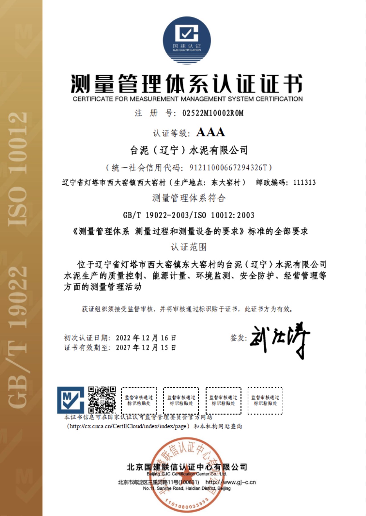近日,北京國(guó)建聯(lián)信認(rèn)證中心有限公司(簡(jiǎn)稱“國(guó)建認(rèn)證”)為臺(tái)泥(遼寧)水泥有限公司頒發(fā)了測(cè)量管理體系認(rèn)證證書,這也是國(guó)建認(rèn)證獲得測(cè)量管理體系認(rèn)證資質(zhì)后在水泥行業(yè)頒發(fā)的首張測(cè)量管理體系認(rèn)證證書。