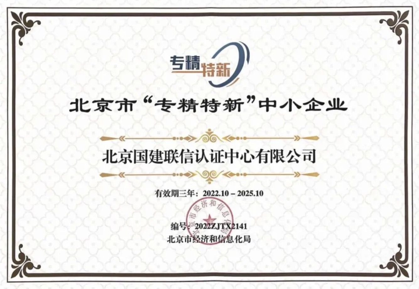 喜訊!國建聯(lián)信獲得北京市“專精特新”中小企業(yè)稱號