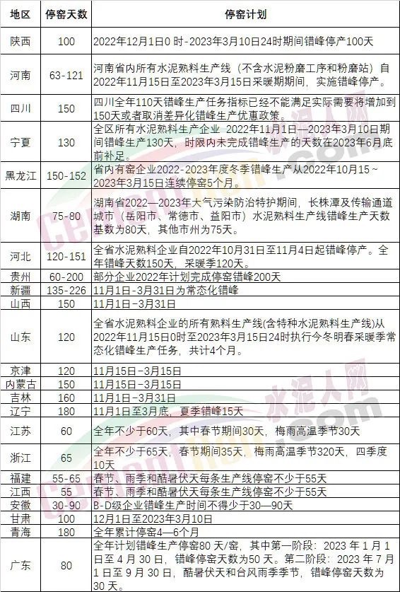 因協(xié)同失敗,水泥企業(yè)頻頻爆庫,不得不以加長錯峰生產時間來平衡供需。因庫滿不得不停窯貴州區(qū)域部分企業(yè)9個月只生產了90天。海螺水泥副董事長王建超公開表示,每一個區(qū)域的供需矛盾不同,有一些區(qū)域可能錯峰50天就可以,有的區(qū)域可能要80天,有的可能要120天、150天,甚至更長。水泥行業(yè)的錯峰生產已經失去原本避免與采暖鍋爐疊加污染的本意,成了減少過剩去庫存的“法寶”。進入10月份,各地錯峰生產政策密集出臺,絕大多數(shù)地區(qū)停窯時間超過100天。其中新疆地區(qū)最長停產226天。