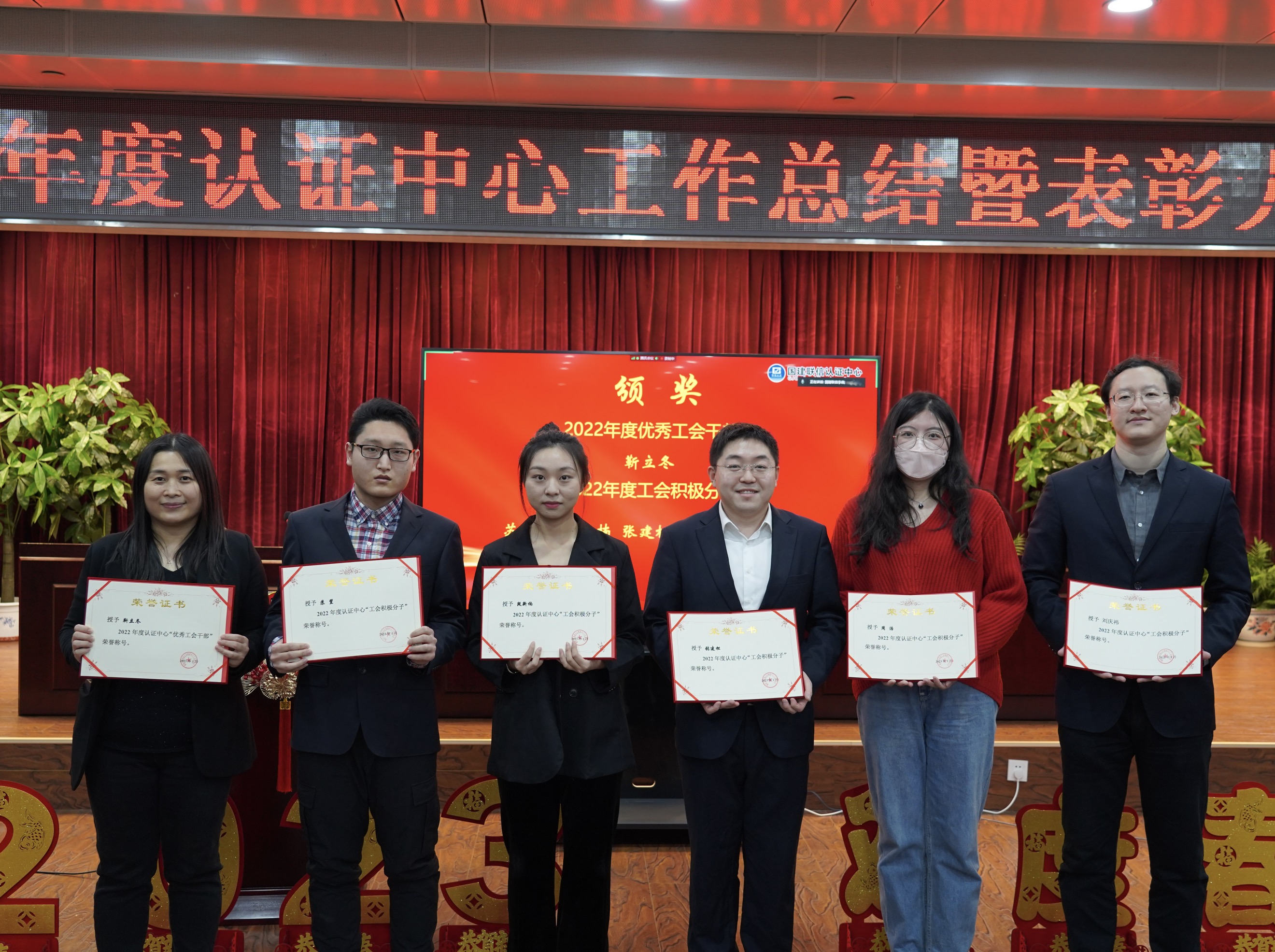 會(huì)議對(duì)2022年度國(guó)建聯(lián)信認(rèn)證中心優(yōu)秀審核員、優(yōu)秀員工、優(yōu)秀工會(huì)干部等進(jìn)行了表彰。
