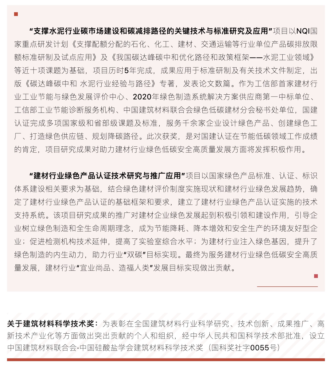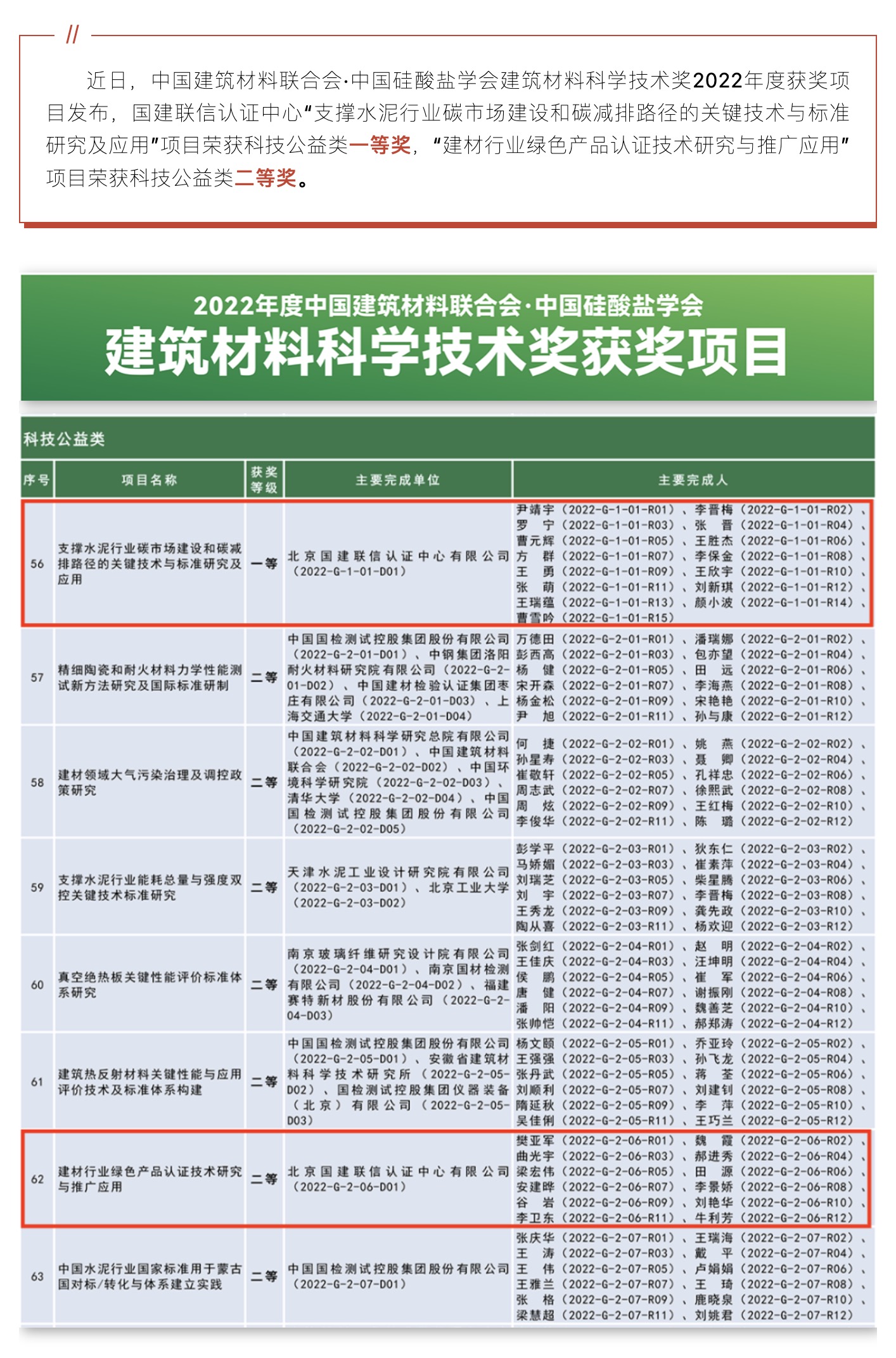 國建認(rèn)證喜獲2022年度建筑材料科學(xué)技術(shù)獎一等獎和二等獎各1項