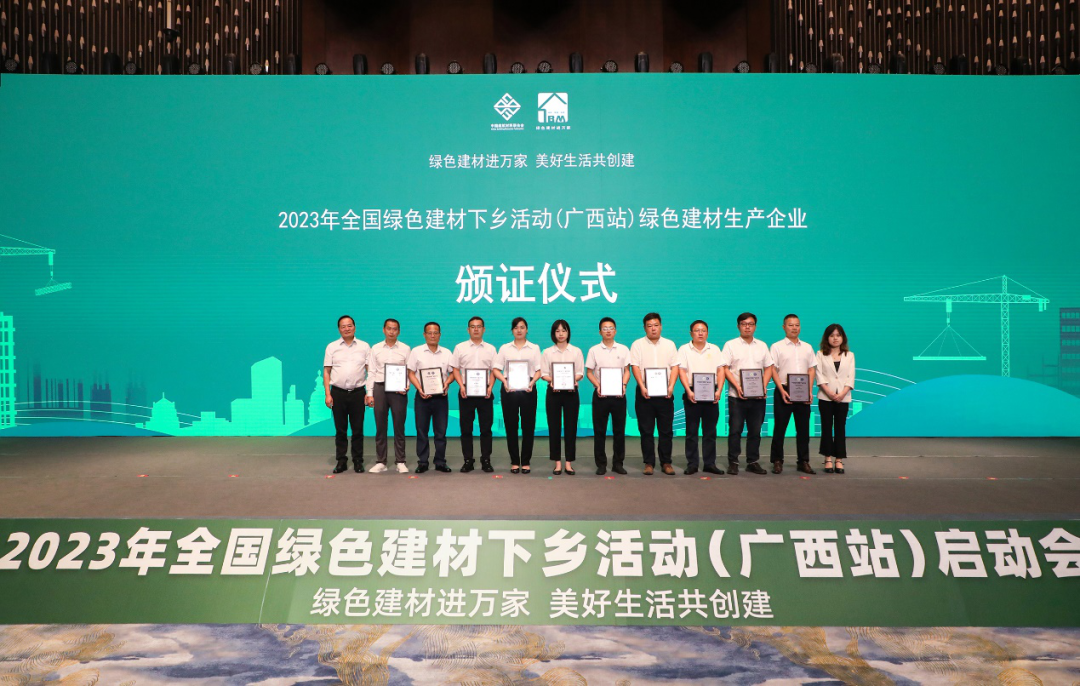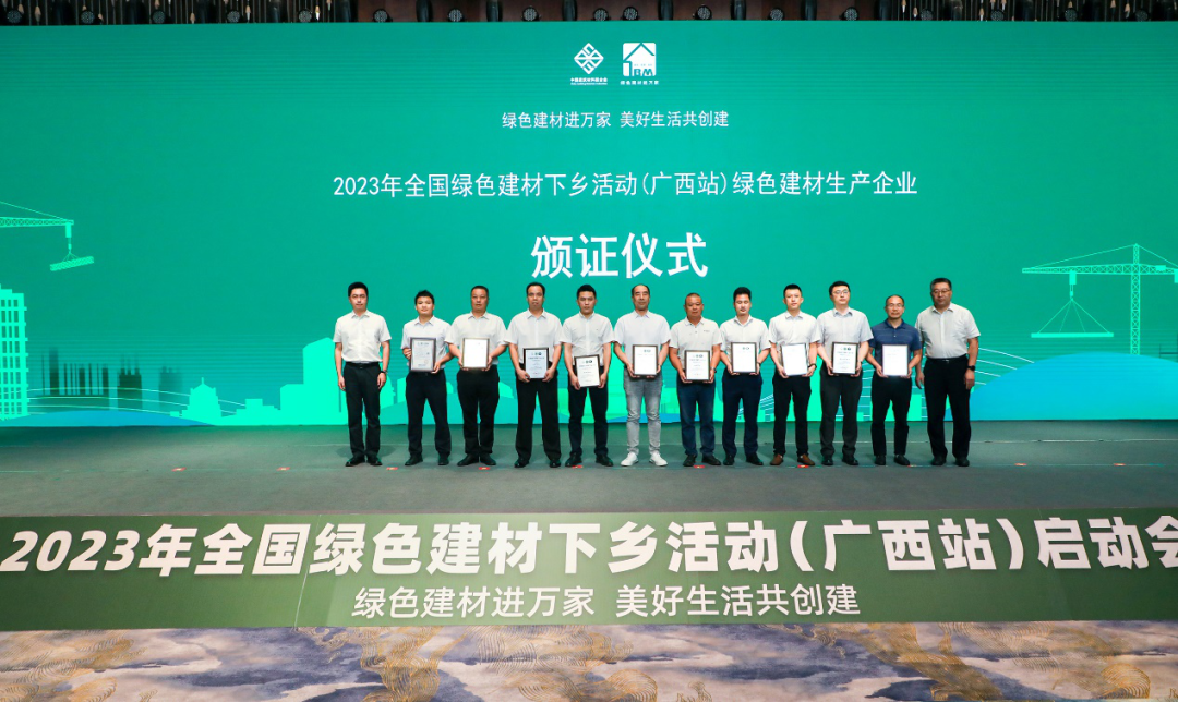 主辦方授予西牛皮防水科技有限公司等32家企業(yè)“廣西綠色建材下鄉(xiāng)活動(dòng)推廣企業(yè)”稱號(hào)。