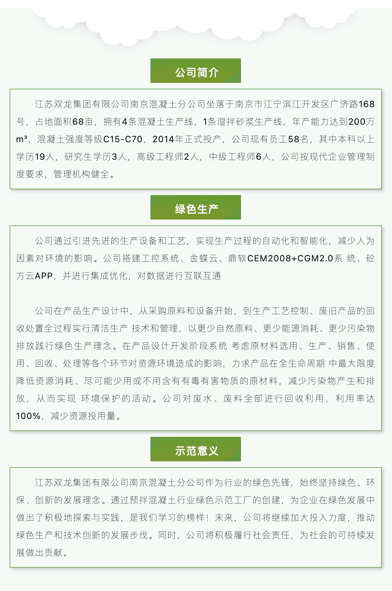 預(yù)拌混凝土行業(yè)綠色工廠展示-江蘇雙龍集團(tuán)有限公司南京混凝土分公司