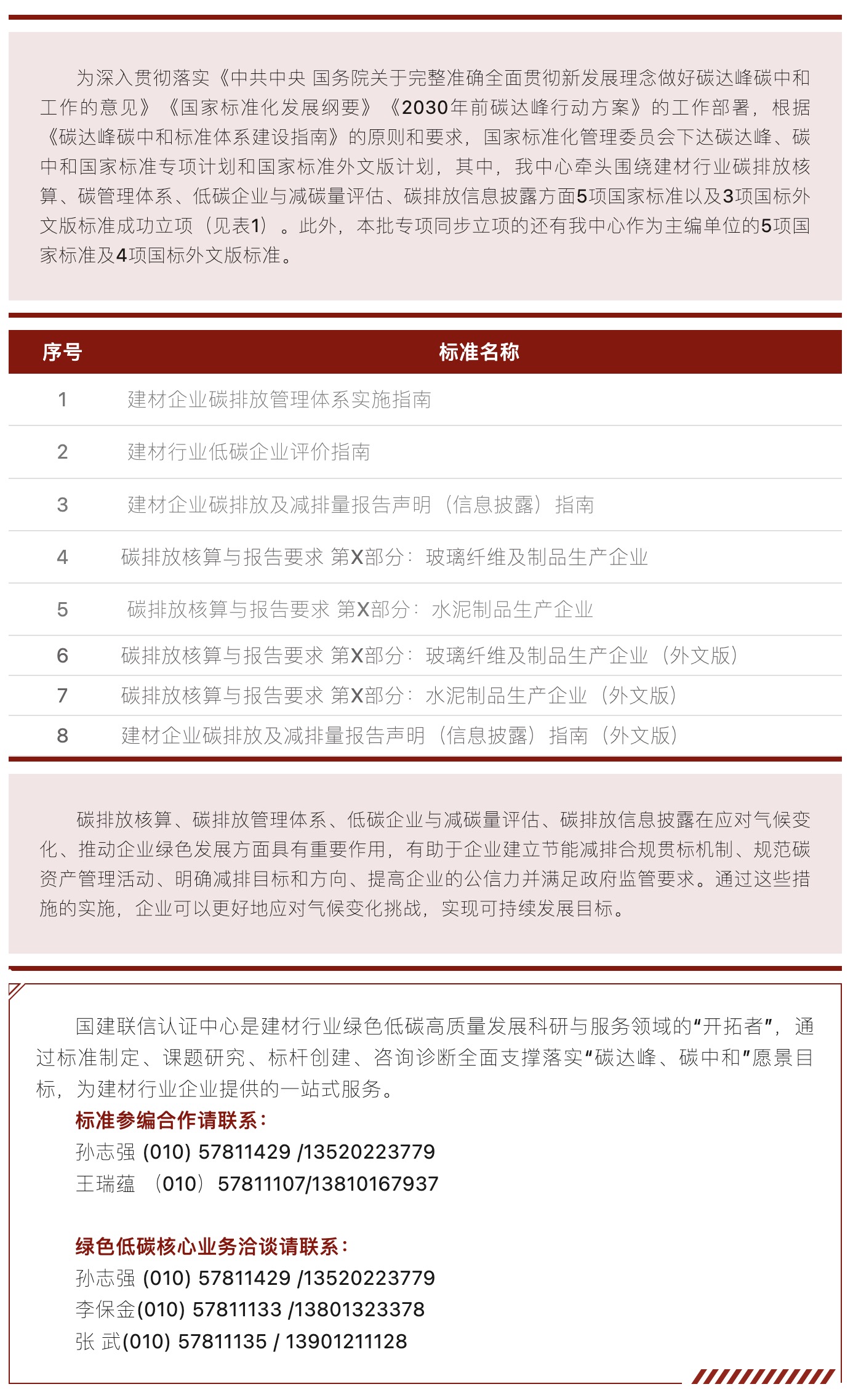 喜報!國建聯(lián)信牽頭碳排放核算、碳管理體系、低碳企業(yè)與減碳量評估、信息披露方面8項國家標準立項