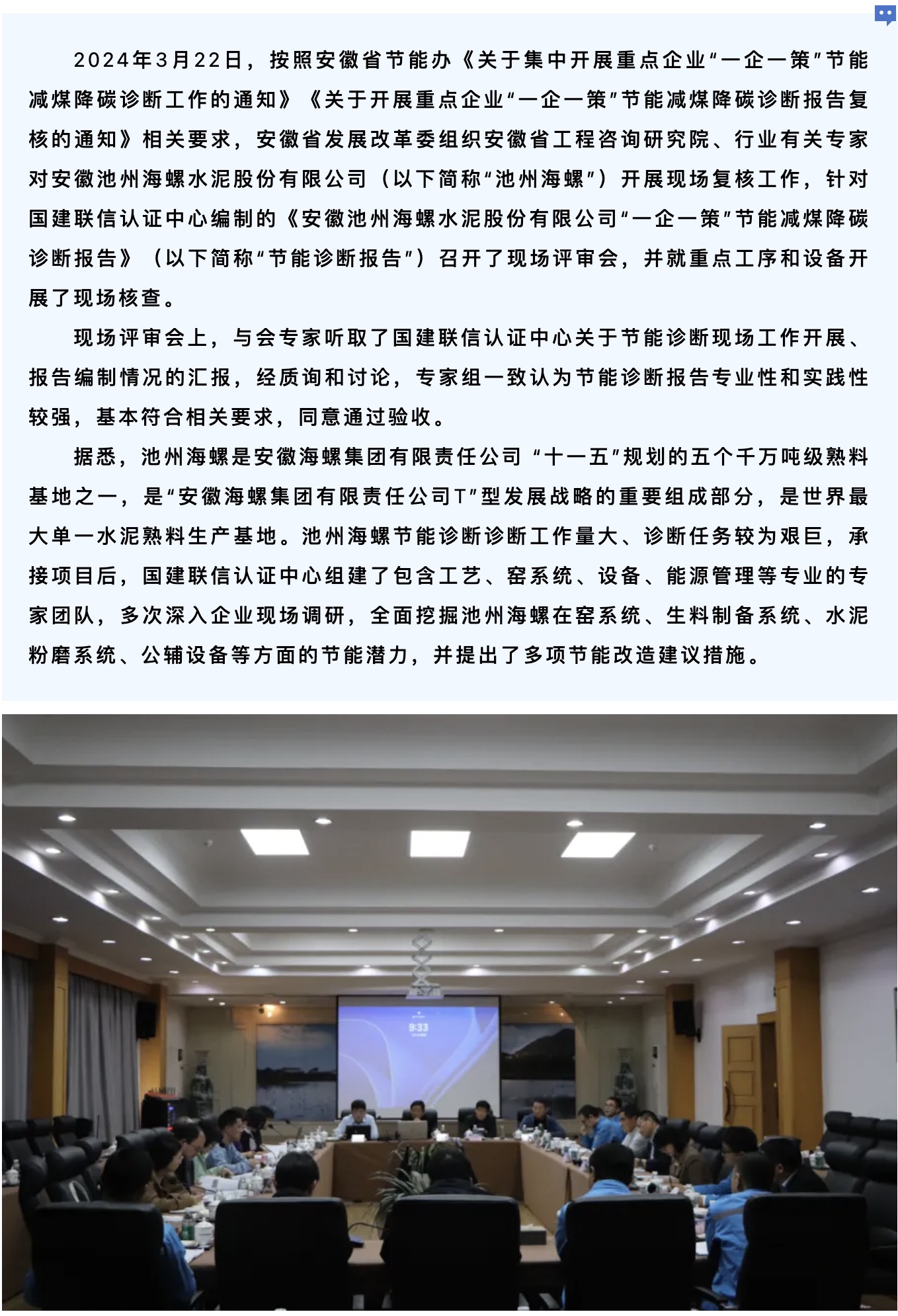 國建認(rèn)證承擔(dān)的池州海螺水泥“一企一策”節(jié)能減煤降碳診斷項(xiàng)目順利通過專家評審