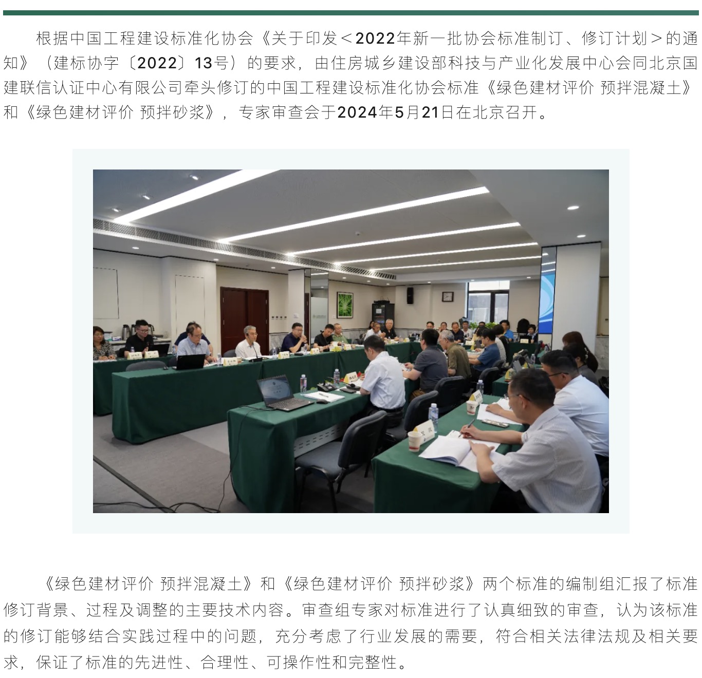 中國工程建設標準化協(xié)會標準《綠色建材評價 預拌混凝土》和《綠色建材評價 預拌砂漿》(修訂)專家審查會會議順利召開