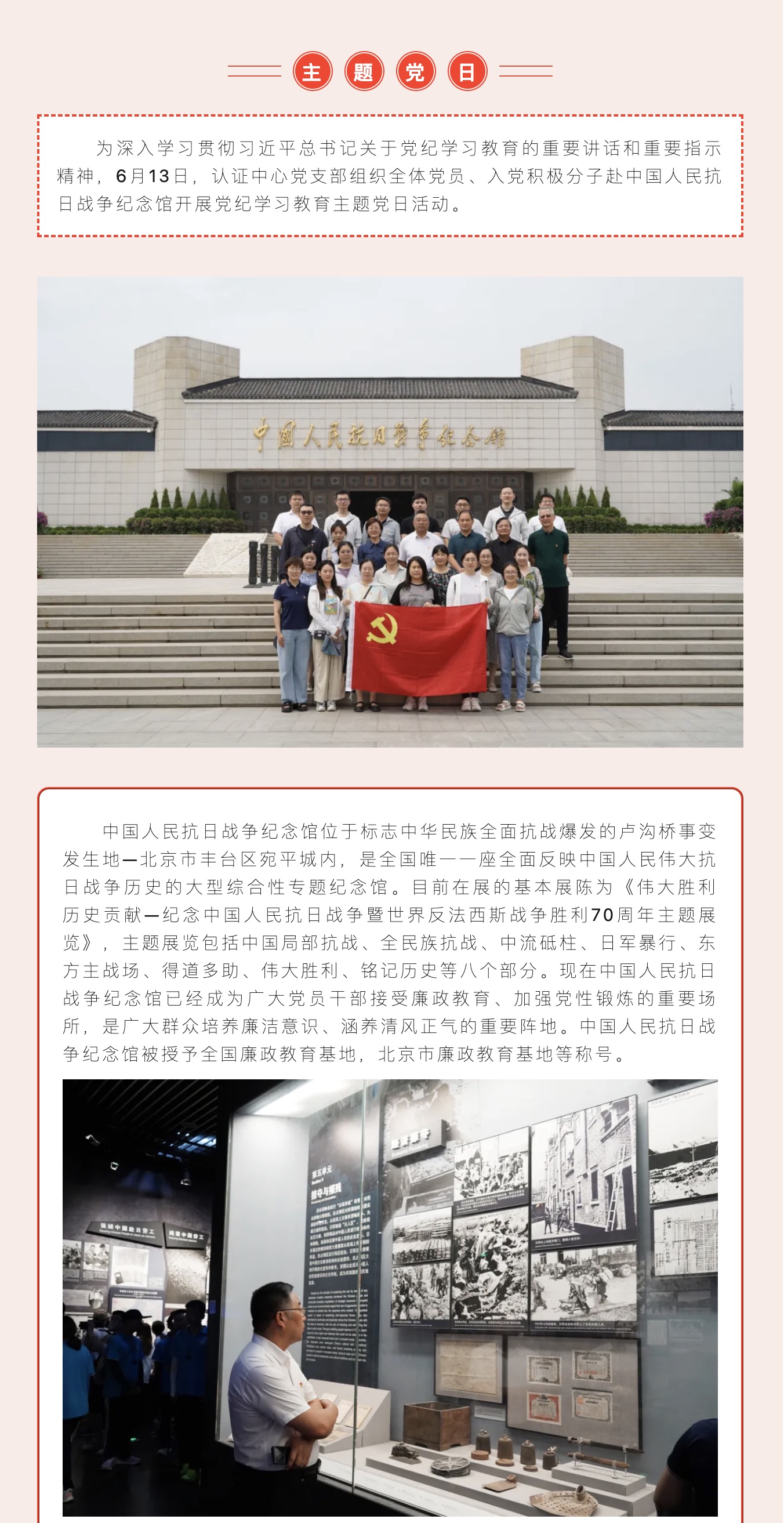 認(rèn)證中心黨支部赴中國人民抗日戰(zhàn)爭(zhēng)紀(jì)念館開展黨紀(jì)學(xué)習(xí)教育主題黨日活動(dòng)