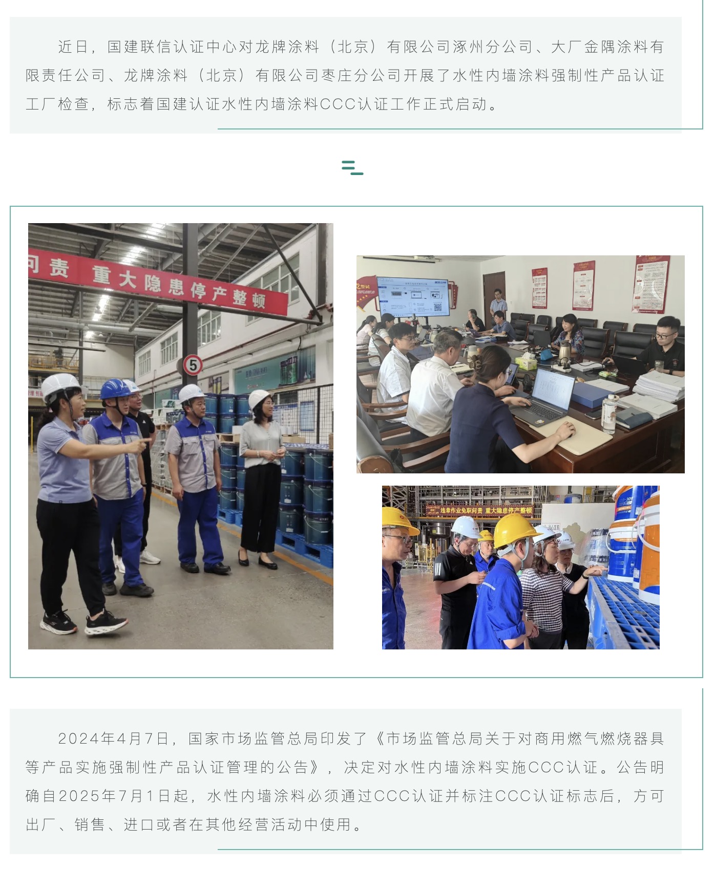 國建認證順利完成首批水性內(nèi)墻涂料CCC認證工廠檢查工作