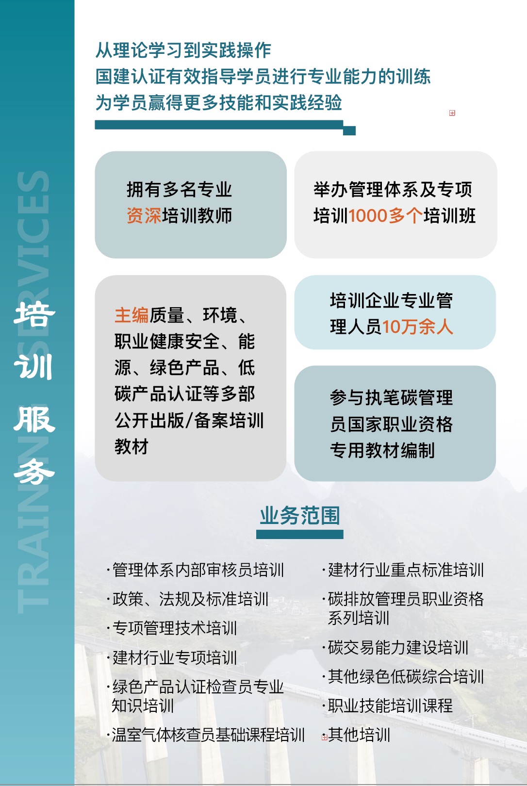 國建聯(lián)信認(rèn)證中心為幫助組織持續(xù)提升管理績效而開展對外公開培訓(xùn),并突出“專業(yè)化、個性化”的服務(wù)理念。通過管理體系內(nèi)部審核員培訓(xùn)、專項管理技術(shù)培訓(xùn)和法律法規(guī)標(biāo)準(zhǔn)培訓(xùn),可提高員工的綜合素質(zhì),為組織管理和認(rèn)證方面的策劃、實施、保持與改進(jìn)提供技術(shù)支持,增強(qiáng)組織的管理績效。中心對外培訓(xùn)業(yè)務(wù)已歷經(jīng)近30年發(fā)展歷史,期間有眾多企業(yè)的上萬人員接受了我中心的培訓(xùn)。自上世紀(jì)90年代我國開始建立并實施認(rèn)證制度以來,我中心做為原國家建材局指定機(jī)構(gòu),開發(fā)并實施了建材行業(yè)內(nèi)部審核員注冊制度,編制了內(nèi)審員專用教材,為建材行業(yè)企業(yè)采用國際管理體系標(biāo)準(zhǔn)并通過認(rèn)證發(fā)揮了積極促進(jìn)作用,同時普遍提升了建材行業(yè)企業(yè)的管理水平。通過近30年的發(fā)展,中心已經(jīng)發(fā)展壯大成為擁有專業(yè)知識和豐富實踐經(jīng)驗的教師隊伍,為企業(yè)實施了上千次的培訓(xùn)授課,為企業(yè)培訓(xùn)了大量管理人員。我中心將一如既往地服務(wù)于行業(yè)企業(yè),與企業(yè)共同發(fā)展,共創(chuàng)輝煌!